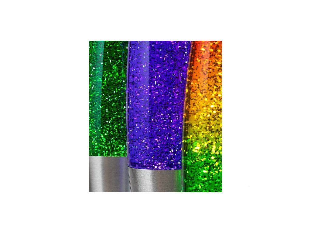 Dekorativní lampa Rabalux Glitter 2 je ideální volbou pro ty, kteří hledají dlouhotrvající, flexibilní a snadno přenosné náladové osvětlení. Tato stolní lampa má jedinečný tvar připomínající raketu. Konstrukce a dekorativní základna jsou vyrobeny z kovu ve stříbrné barvě, zatímco stínítko je z průhledného skla. Vnitřek lampy je naplněn fialovou tekutinou, v níž se vznášejí stříbrné třpytky, díky čemuž lampa vytváří magický a třpytivý efekt. Model je vybaven vypínačem na kabelu a vestavěným LED světelným zdrojem, který zaručuje dlouhou životnost. Lampička si získá oblibu u všech členů rodiny, a tak možná nebude snadné rozhodnout, kam ji umístit. Naštěstí ji můžete kdykoliv přemístit mezi jednotlivými místnostmi. Doporučujeme ji do obývacího pokoje, dětského pokoje nebo ložnice.