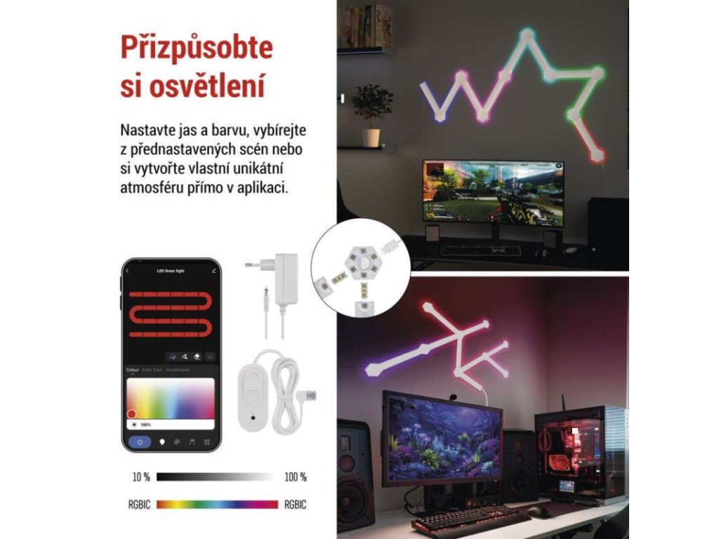 GoSmart LED svítidlo Lines bílé, 9 dílů, 34 W, RGBIC stmívatelné, WiFi