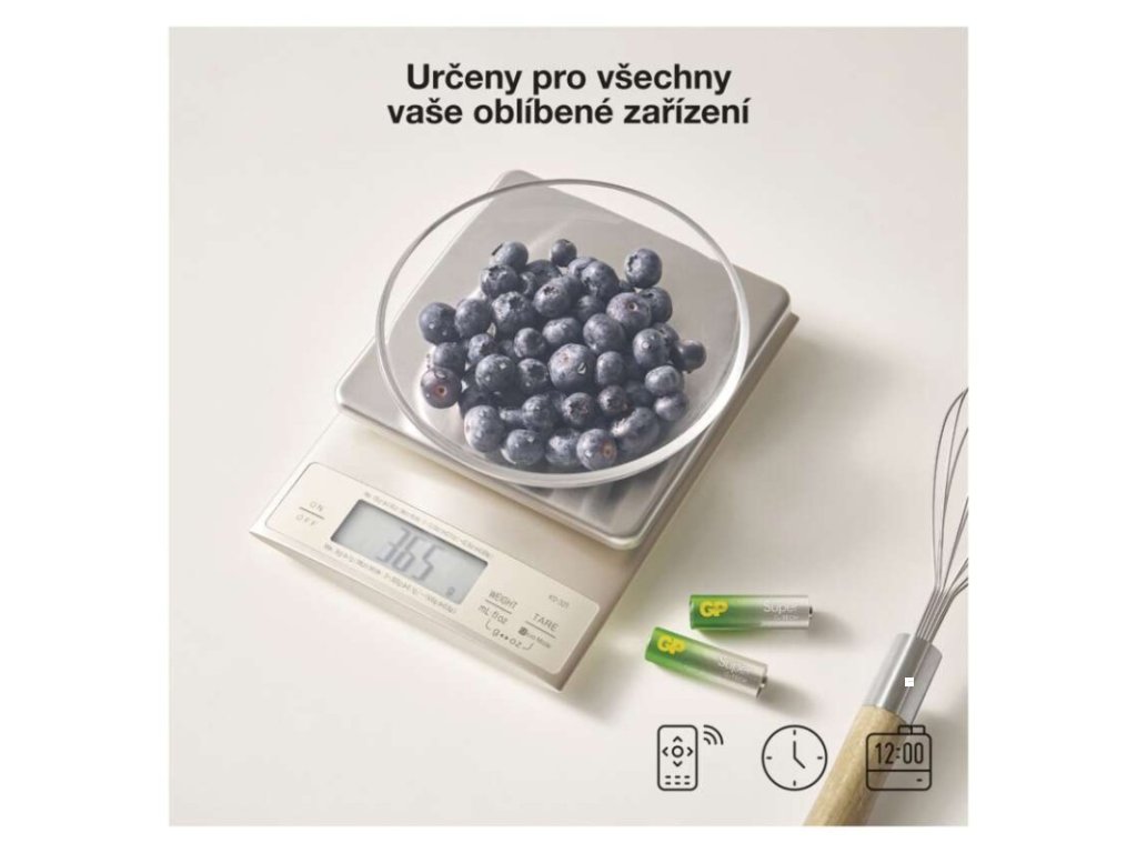 chemické složení: alkalické|hmotnost: 840 g|kapacita: neuvádí se|kategorie/řada: Super Alkaline|max. skladovatelnost: 10 let|možnost nabíjení: ne|napětí: 1,5 V|počet nabíjecích cyklů: nenabíjecí|prodejní obal: 12 ks AA+12 ks AAA + fén, blistr|provozní teplota: -18 °C až +50 °C|rozměr: 168 × 192 × 32 mm|typ: LR6 + LR03|velikost baterie: AA, AAA|značka: GPDoplňkové parametry