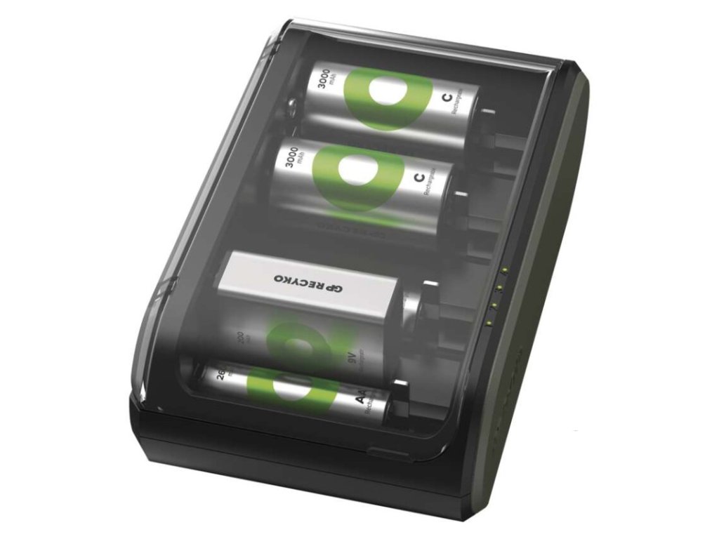 detekce alkalických baterií: ano|detekce poškozených baterií: ano|doba nabíjení 9 V 200 mAh: 6:00 - 12:00|doba nabíjení AA 2 700 mAh: 8:00|doba nabíjení AAA 1 000 mAh: 4:00|doba nabíjení C 3 500 mAh: 8:00|doba nabíjení D 4 500 mAh: 10:00|doba nabíjení přiložených článků: neuvádí se|druh nabíječky: inteligentní|kabel součástí balení: ano|nabíjecí proud 9 V: 40–20 mA|nabíjecí proud AA: 370 mA|nabíjecí proud AAA: 290 mA|nabíjecí proud C: 550 mA|nabíjecí proud D: 550 mA|napájení: USB 5 V/2 A|ochrana proti přepólování: ano|počet článků uvnitř balení: 0|počet nabíjecích kanálů: 4|počet nabíjených baterií současně: 2 nebo 4|připojení nabíječky: USB|prodejní obal: 1 ks, papírová krabička|rozměr: 155 × 90 × 52 mm|speciální funkce: neuvádí se|typ článků uvnitř balení: bez článků|typ nabíjených baterií: NiMH|velikosti nabíjených článků: AAA, AA, C, D, 9 V|značka: GPDoplňkové parametry