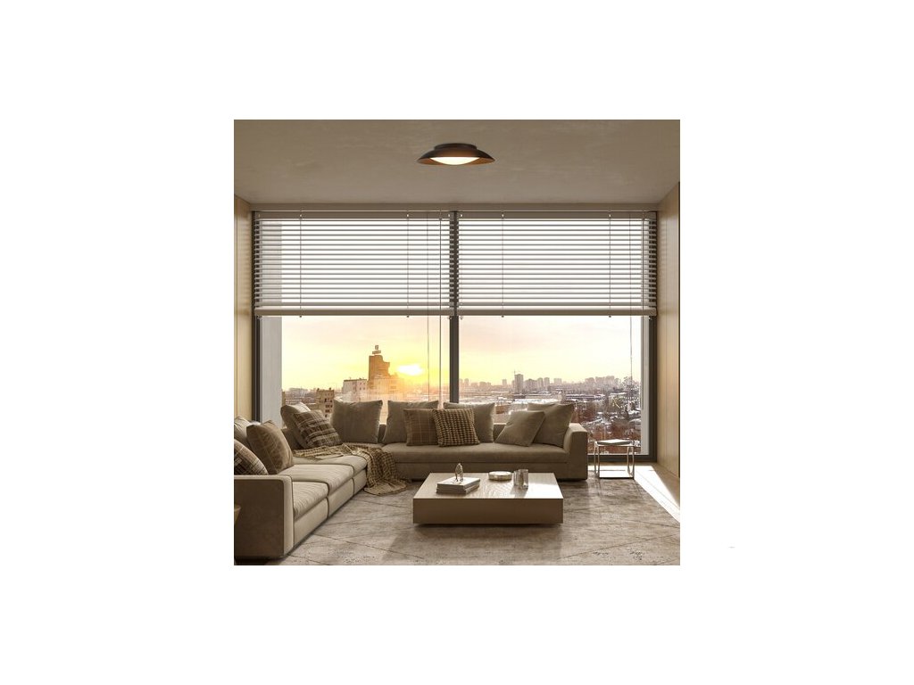 Stropní svítidlo Hafsa v moderním stylu se doporučuje především do obývacího pokoje nebo ložnice. Kulatý model je vyroben z kovu v černo-zlaté barevné kombinaci, má široce rozprostřené tělo svítidla ve tvaru desky a bílé plastové stínítko. Díky teplým barvám se tato elegantní lampa hodí do interiérů, které upřednostňují povrchy a doplňky ze dřeva a jiných přírodních materiálů. Svítilna má zabudovaný LED světelný zdroj energetické třídy G o výkonu 20 W, svítivostí 1080 lumenů se stínítkem, 1300 lumenů bez stínítka. Zdroj světla s barevnou teplotou 3000 K má velmi dlouhou životnost: Bude vám sloužit až 36 000 hodin! Svítilna Hafsa osvětluje teplým bílým světlem, které pomáhá vytvářet útulnou domácí atmosféru, která je ideální pro relaxaci a přípravu ke spánku. Stropní lampa má průměr 300 mm a vzdálenost od stropu 75 mm.