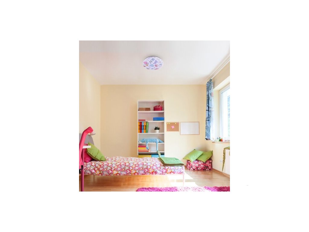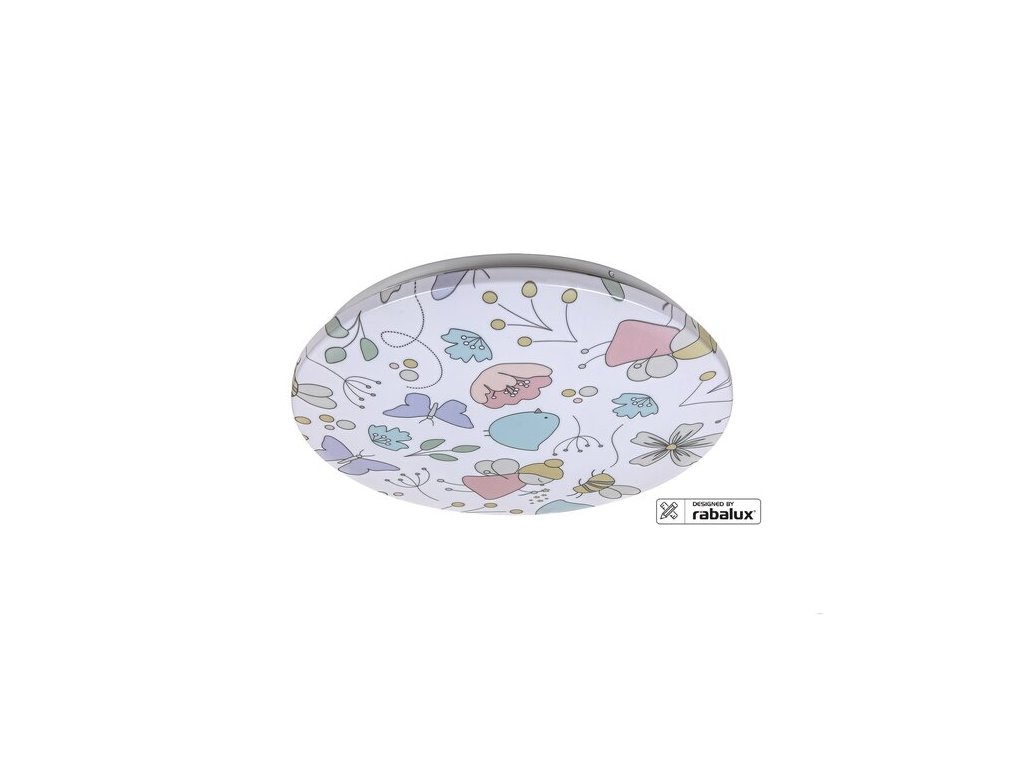 Díky veselým barvám bude stropní svítidlo Hanka okouzlujícím doplňkem každého dětského pokoje. Svítidlo Hanka z kovu a plastu bylo navrženo firmou Rábalux. Bílou základní barvu kulatého svítidla zdobí poutavé, jedinečné a barevné kresby. Květinové a ptačí motivy na tomto modelu určitě okouzlí malé holčičky. Stropní svítidlo má vestavěný LED světelný zdroj s výkonem 24 W, světelným tokem 1 560 lumenů a životností 25 000 hodin. Světelný zdroj s teplotou 3000 K, vyzařuje teplé bílé světlo, které zvyšuje útulnou, intimní atmosféru v dětském pokoji. Svítidlo Hanka má průměr 380 mm a vzdálenost 70 mm od stropu. Tento půvabný model má 5letou záruku.
