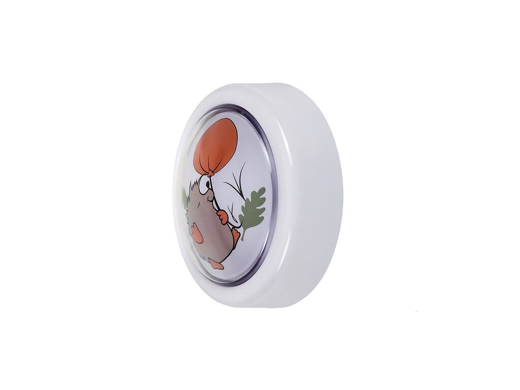 Svítidlo Rabalux Hedgy Pushlight je designový model značky Rabalux. Doporučujeme jej všem, kteří hledají snadno ovladatelné a zároveň dekorativní noční osvětlení do dětského pokoje. Lampička má kulatý tvar, je vyrobena z plastu a zdobená roztomilým motivem ježečka s balónkem na pohádkovém bílém pozadí. Disponuje vestavěným LED zdrojem s dlouhou životností, který vyzařuje studené bílé světlo, ideální pro noční orientaci. Noční světlo lze snadno zapnout a vypnout jednoduchým stisknutím stínítka, takže není potřeba hledat vypínač ve tmě. Lampička funguje na dvě AA baterie. Dodává se bez baterií.
