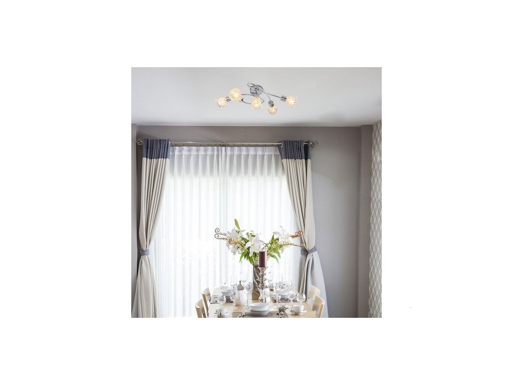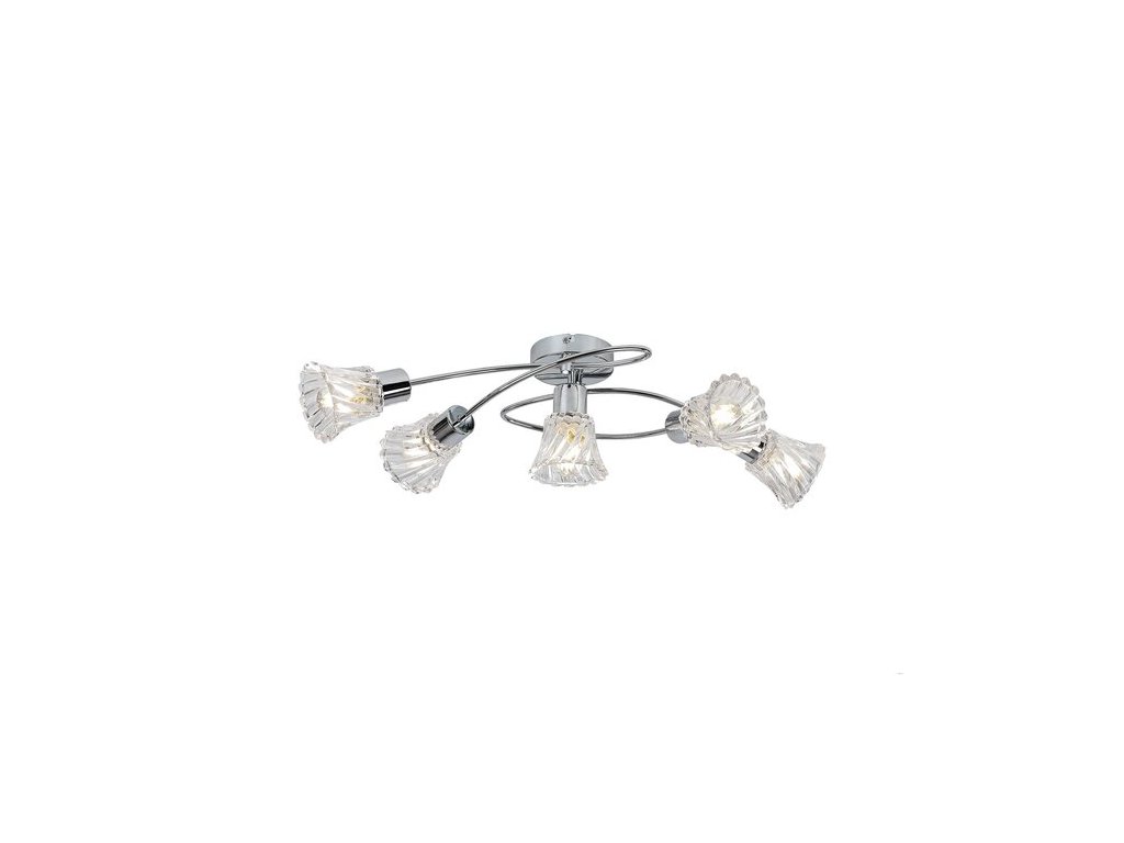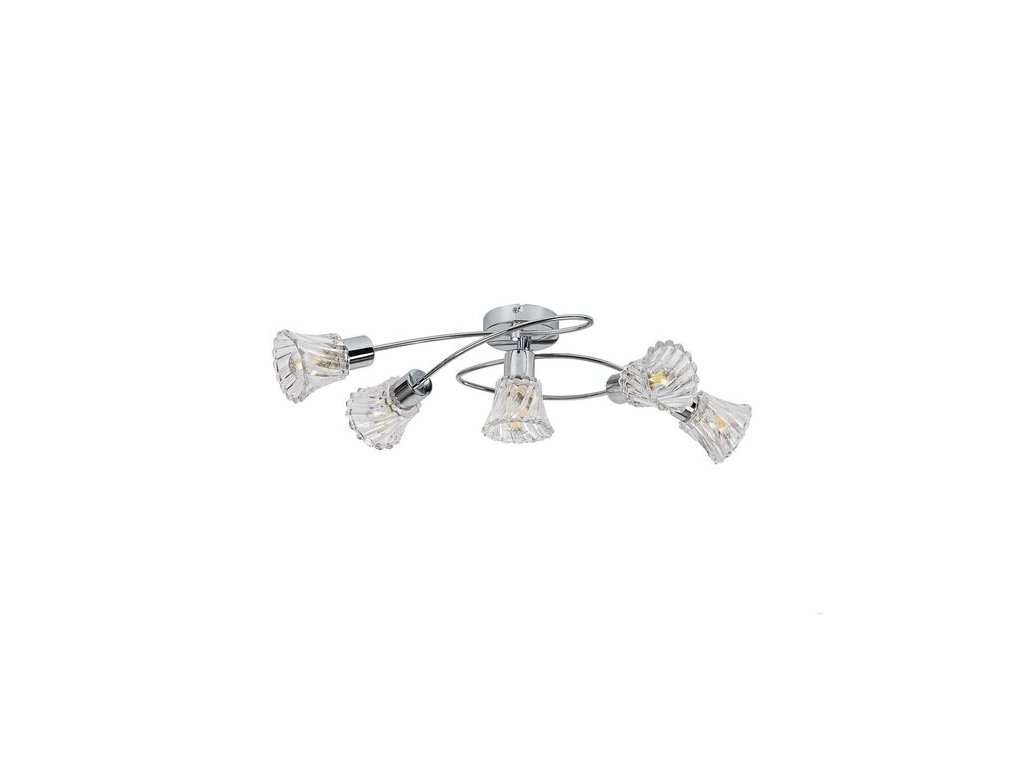Bodové svítidlo Hestia s 5 žárovkami v klasickém stylu bude elegantním nábytkem ve vašem obývacím pokoji nebo ložnici. Chromové kovové svítidlo připomínající kroutící se úponky je doplněno průhlednými skleněnými stínítky. Svítidlo lze připevnit na strop pomocí kulatého ozdobného podstavce. Zajímavostí stínítek ve tvaru zvonu je zkroucený efekt jejich zvlněného povrchu. Pět hlav svítidla dívajících se různými směry zajišťuje dostatek světla v každé části místnosti. Toto stropní svítidlo je možné použít s pěti žárovkami, z nichž každá má výkon až 40W. Typ patice je E14. Pokud chcete vylepšit intimní a útulnou atmosféru, vyberte si pro toto svítidlo teplé bílé světelné zdroje. Rozměry bodového svítidla Hestia s 5 žárovkami jsou následující: šířka 635 mm, vzdálenost od stropu 165 mm, průměr instalace 100 mm. Tento model se dodává bez světelných zdrojů.