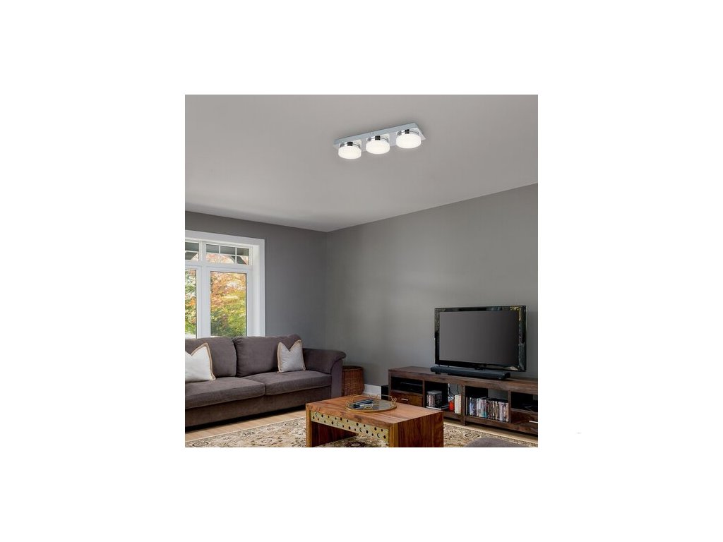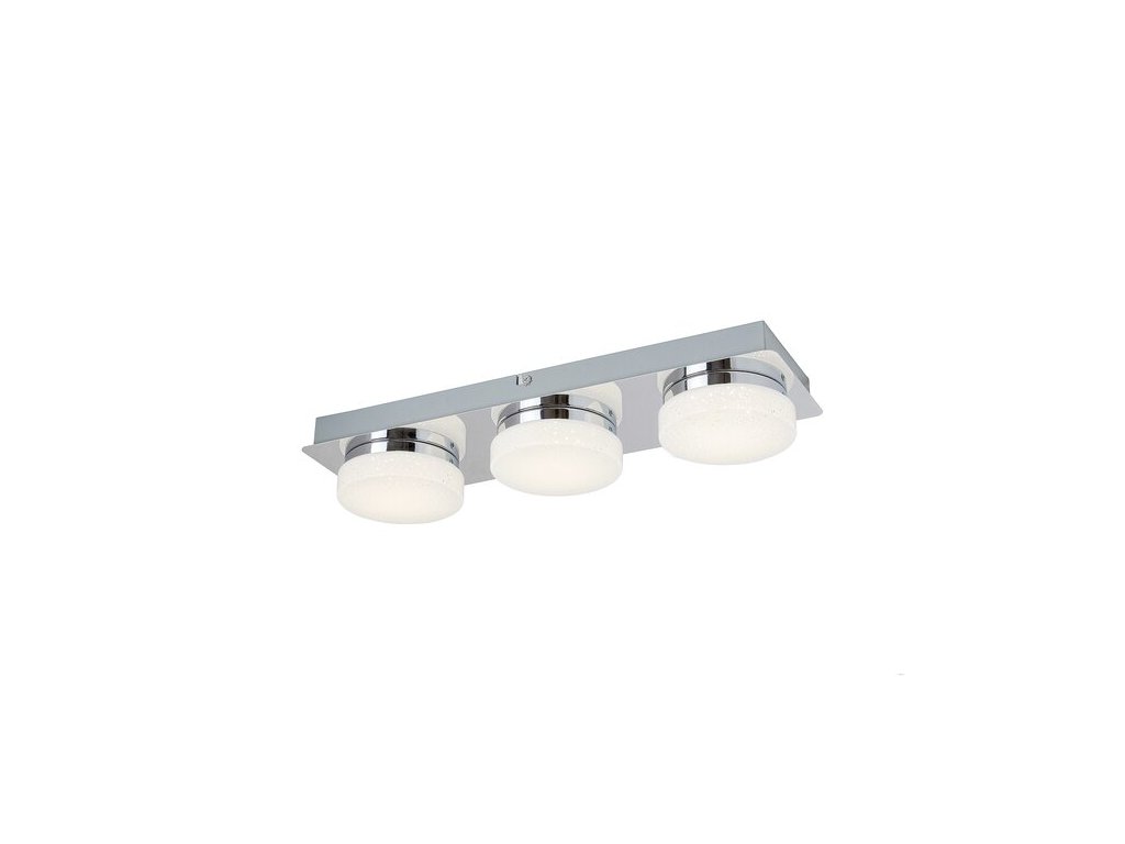 Trojité stropní svítidlo Hilary bude skutečně útulným doplňkem s efektem hvězdného světla do vašeho moderního obývacího pokoje nebo ložnice. Chromované tělo kovového a plastového bodového svítidla je doplněno stínítky v barvě opálu, pod kterými jsou skryty tři vestavěné energeticky úsporné LED světla. Spotřeba energie světelných zdrojů je 15 W, jejich svítivost je 1200 lumenů a jejich životnost je 20 000 hodin. Jejich barevná teplota je 4000 K, takže osvětlí své okolí přirozeným bílým světlem. Délka obdélníkové dekorativní základny svítidla je 430 mm. Trojité stropní svítidlo Hilary je dodáváno s 5-letou zárukou.