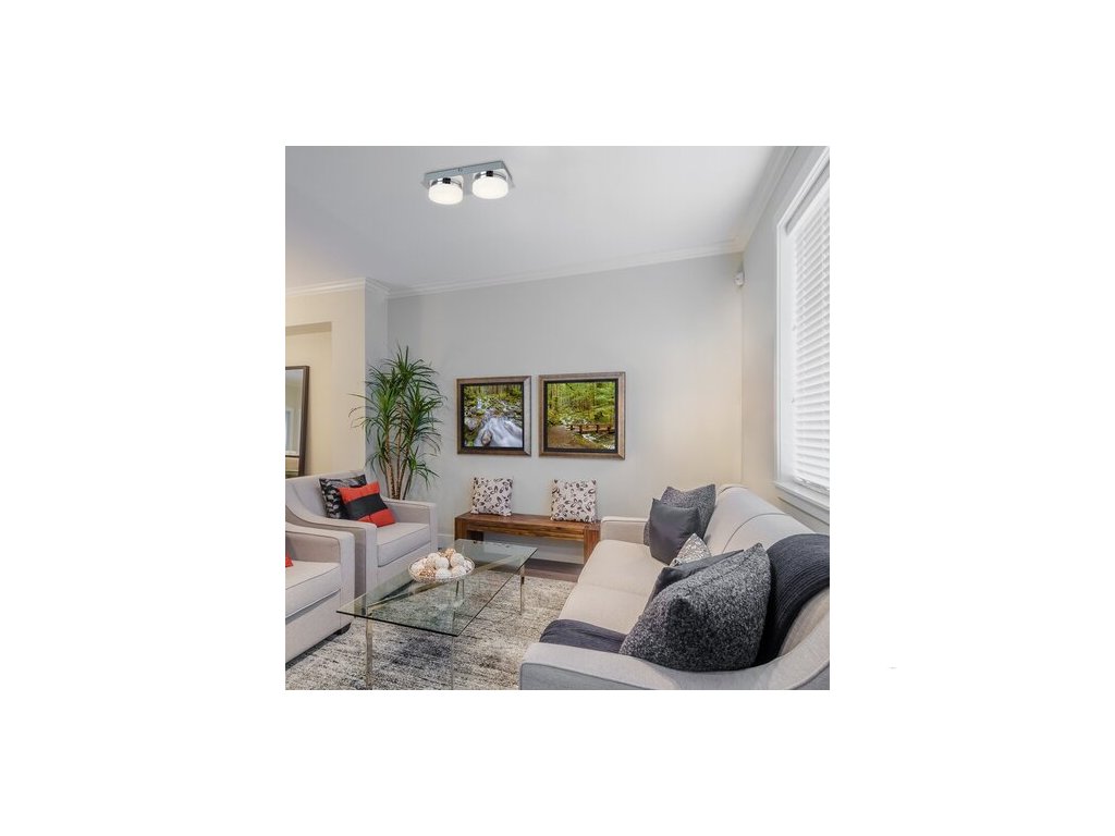 Dvojité stropní svítidlo Hilary bude skutečně útulným doplňkem s efektem hvězdného světla do vašeho moderního obývacího pokoje nebo ložnice. Tělo kovového a plastového bodového svítidla je doplněno o opálové stínidlá, pod kterými jsou skryty dvě vestavěné energeticky úsporné LED světla. Spotřeba energie světelných zdrojů je 10 W, jejich svítivost je 800 lumenů a jejich životnost je 20 000 hodin. Jejich barevná teplota je 4000 K, takže osvětlí své okolí přirozeným bílým světlem. Délka obdélníkové dekorativní základny svítidla je 280 mm. Dvojité stropní svítidlo Hilary je dodáváno s 5-letou zárukou.