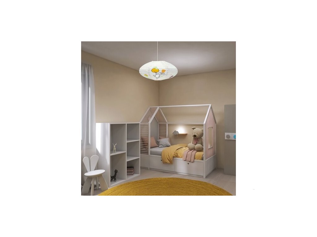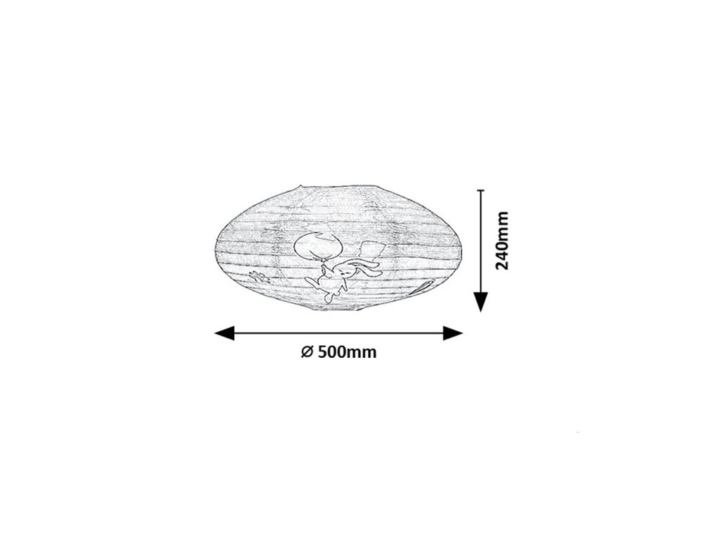 Dětské stropní svítidlo Rabalux Hopply z papíru je vlastním designovým modelem značky Rabalux. Doporučujeme jej těm, kteří chtějí dětský pokoj zpříjemnit roztomilými a veselými motivy. Svítidlo má zploštělý, zaoblený tvar, je vyrobeno z papíru a zdobeno krásným vzorem s králíčkem a balónky, který si jistě získá srdce malého obyvatele pokoje. Převládající barvy motivů jsou oranžová, hnědá a šedavé odstíny, které jsou příjemné a uklidňující pro oči a vyzařují teplo. Dětské svítidlo lze použít s jednou žárovkou o výkonu až 40 W. Pokud chcete zvýšit útulnou a intimní atmosféru, zvolte žárovku s teplým bílým světlem. Svítidlo je dodáváno bez objímky a světelného zdroje.