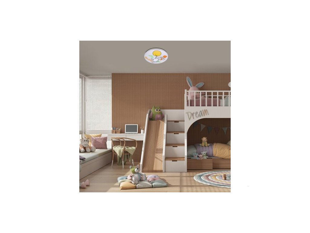 Dětské stropní svítidlo Rabalux Hopply je vlastním designovým modelem značky Rabalux. Primárně jej doporučujeme těm, kteří hledají barevné LED stropní svítidlo s dlouhou životností do dětského pokoje. Svítidlo má kulatý tvar, kovovou konstrukci a plastové stínidlo se vzorem. Bílé stínidlo je ozdobeno roztomilým motivem králíčka a balónků, který jistě potěší každé dítě. Dominantní barvy vzoru jsou hnědá, oranžová a zelená, díky čemuž je tento model ideálním doplňkem do pokojů chlapců i dívek. Dětské svítidlo obsahuje vestavěný LED světelný zdroj, který vyzařuje teplé bílé světlo, vytvářející útulnou a intimní atmosféru. Díky LED technologii se dětské svítidlo vyznačuje energeticky úsporným provozem a výjimečně dlouhou životností.