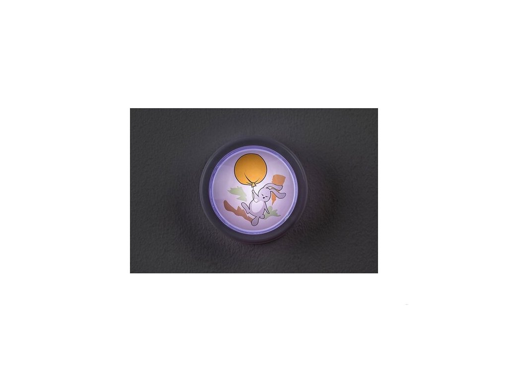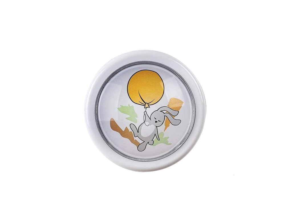 Dětské noční svítidlo Rabalux Hoppylol je vlastním designovým modelem značky Rabalux. Doporučujeme jej všem, kteří hledají snadno použitelné a zároveň dekorativní noční světlo do dětského pokoje. Lampička má kulatý tvar, je celá vyrobena z plastu a zdobí ji roztomilý motiv zajíčka s balónkem na bílém pozadí. Světlo je vybaveno jednoduchým ovládáním – stačí pouze stisknout stínítko, čímž se zapne nebo vypne, takže není nutné ve tmě hledat vypínač. Lampička funguje na dvě AA baterie. Vestavěný LED zdroj s dlouhou životností vyzařuje příjemné světlo studené bílé barvy, které pomáhá dětem bezpečně se orientovat v noci. Dodává se bez baterií.