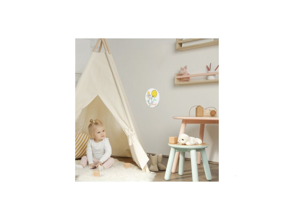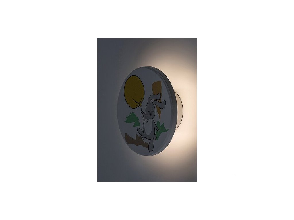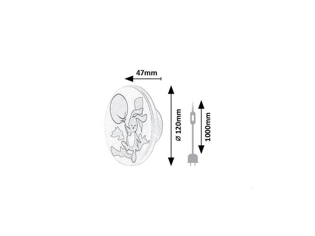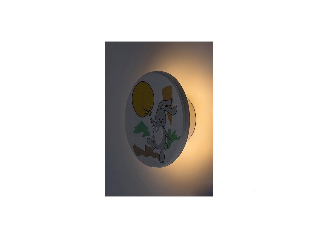 Dětské nástěnné svítidlo Rábalux Hopply je model z vlastního návrhu značky Rábalux. Je ideální volbou pro ty, kteří hledají barevné doplňkové svítidlo s dlouhou životností do dětského pokoje. Svítidlo má kulatý tvar, kovové tělo a stínidlo z plastu se vzorem. Bílé stínidlo zdobí roztomilý motiv králíčka s balónky, který jistě zahřeje srdce malého obyvatele pokoje. Dominantními barvami motivu jsou hnědá, oranžová a zelená, takže tento model je skvělým doplňkem jak do chlapeckého, tak do dívčího dětského království.Dětské nástěnné svítidlo je vybaveno vestavěným LED světelným zdrojem, jehož barevnou teplotu lze nastavit pomocí DIP přepínače. Svítidlo svítí směrem dozadu na stěnu. Díky LED technologii se vyznačuje energetickou úsporností a dlouhou životností.