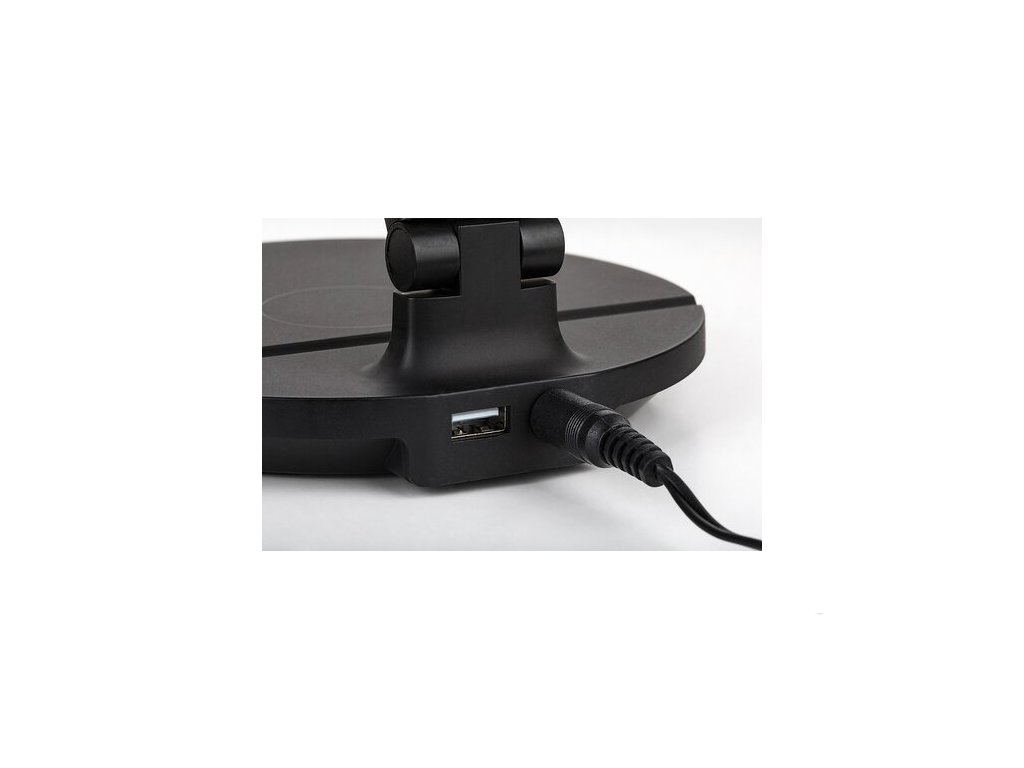 Moderní inteligentní stolní lampa Isak je díky své úžasné všestrannosti skvělou volbou do obývacího pokoje, ložnice nebo pracovny. Černá plastová lampa je doplněna bílým stínítkem a kulatým podstavcem. Zabudovaný LED světelný zdroj energetické třídy G má výkon 9 W, svítivost 570 lumenů se stínítkem, 1000 lumenů bez stínítka, životnost 25 000 hodin a úhel svícení 100°. Jas a teplotu barev svítidla Isak lze ovládat dotykovým spínačem. Tu lze nastavit na 3000, 4000 nebo 6500 K, takže si můžete vybrat mezi teplým, přirozeným nebo studeným bílým světlem. Inteligentní lampa má také dotykové ovládání paměti a časovače a funkci podsvícení. USB port svítidla Isak umožňuje nabíjet mobilní telefon, ale v případě některých mobilních telefonů můžete nabíjet i bezdrátově. Lampa obsahuje také jednu baterii CR2032. Stolní lampa má výšku 380 mm, šířku 340 mm, průměr podstavce 165 mm a délku kabelu 1500 mm.