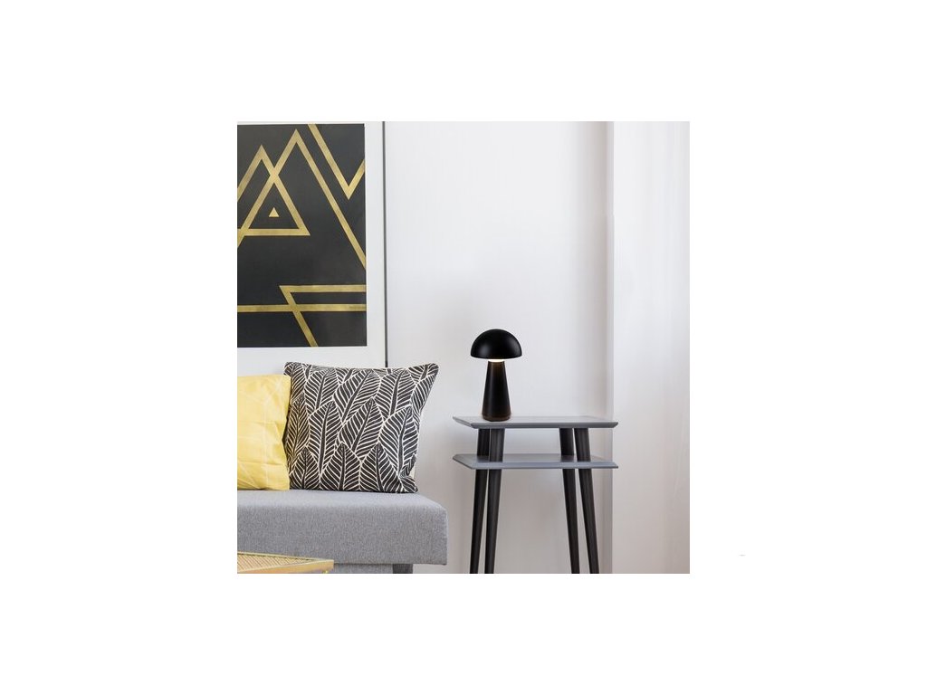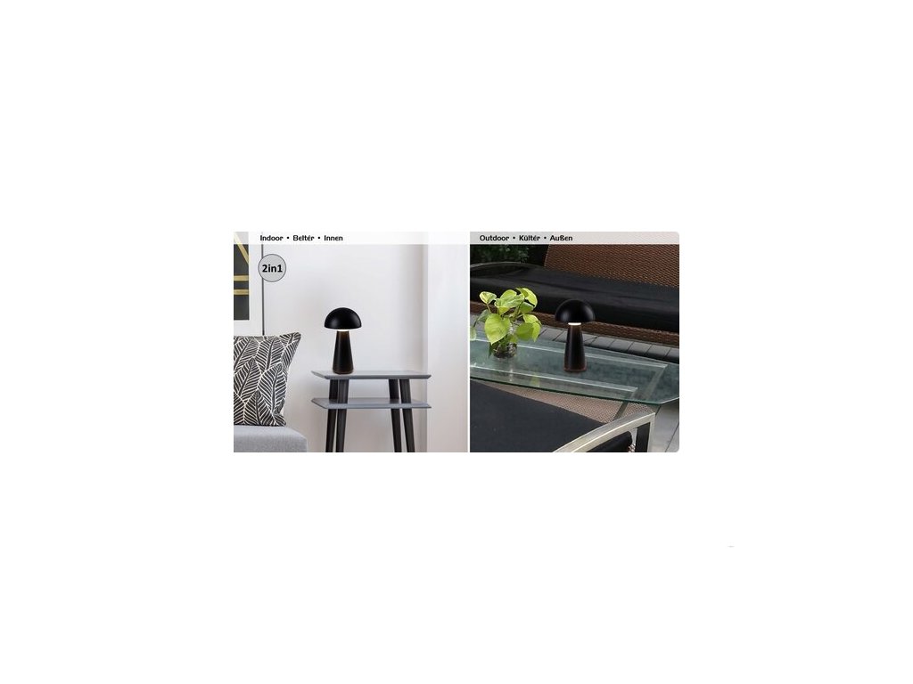Stolní lampa Ishtar v moderním stylu může být nepřehlédnutelným kusem nábytku v obýváku nebo ložnici. Jedinečný vzhled matného černého modelu, připomínajícího hřib, se pojí se spoustou funkcí navíc. Ishtar je celý vyroben z plastu a má zabudovaný LED světelný zdroj energetické třídy G o výkonu 3 W a svítivostí 130 lumenů se stínítkem a 300 lumenů bez stínítka. Světelný zdroj s barevnou teplotou 3000 K svítí teplým bílým světlem a má životnost 25 000 hodin. Stolní lampu lze pomocí dotykového spínače stmívat, tzn. měnit její jas. Tento model má baterii s napětím 5 V a kapacitou 2000 mAh, doba nabíjení je 7 hodin. Svítilnu lze nabíjet přes USB kabel. Krytí Ishtar IP44 zajišťuje ochranu proti pronikání pevných částic o průměru větším než 1 mm, jakož i proti stříkající vodě z jakéhokoli směru. Výška stolní lampy je 290 mm, průměr 160 mm a délka kabelu 500 mm.