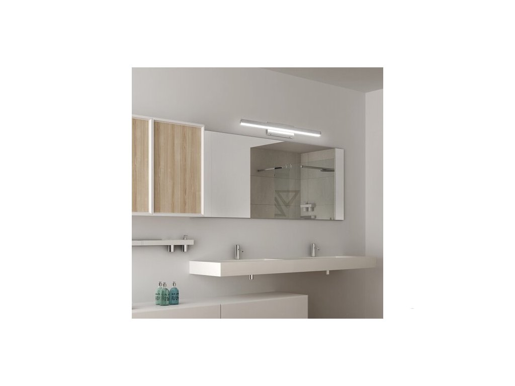 Nové koupelnové nástěnné svítidlo, které rozšiřuje produktovou rodinu John, se doporučuje milovníkům moderního stylu a elegantních tvarů. Model, který je sestaven z jednoduchých obdélníkových tvarů, zaplaví místnost přirozeným bílým světlem, pokud je namontovaný nad umyvadlem nebo zrcadlem, čímž vytváří čistý a moderní efekt. Vyrobeno v chromové barvě, svítidlo John má vestavěný energeticky úsporný LED světelný zdroj s výkonem 18 W, svítivostí 1300 lumenů a životností 30 000 hodin. Barevná teplota světelného zdroje je 4000 K. Nástěnné svítidlo sestávající z kovového svítidla a plastového stínítka má krytí IP44, které zaručuje, že je chráněno proti vniknutí předmětů s maximálním průměrem 1 mm, jakož i proti stříkající vodě z libovolného směru. Rozměry svítidla jsou následující: šířka 627 mm, výška 80 mm, vzdálenost od stěny 70 mm. Na koupelnové svítidlo John se vztahuje 5letá záruka.