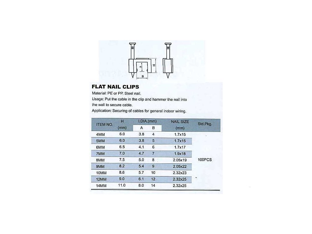 Kabelová příchytka plochá 5x3,8mm bílá, balení 100ksDoplňkové parametry