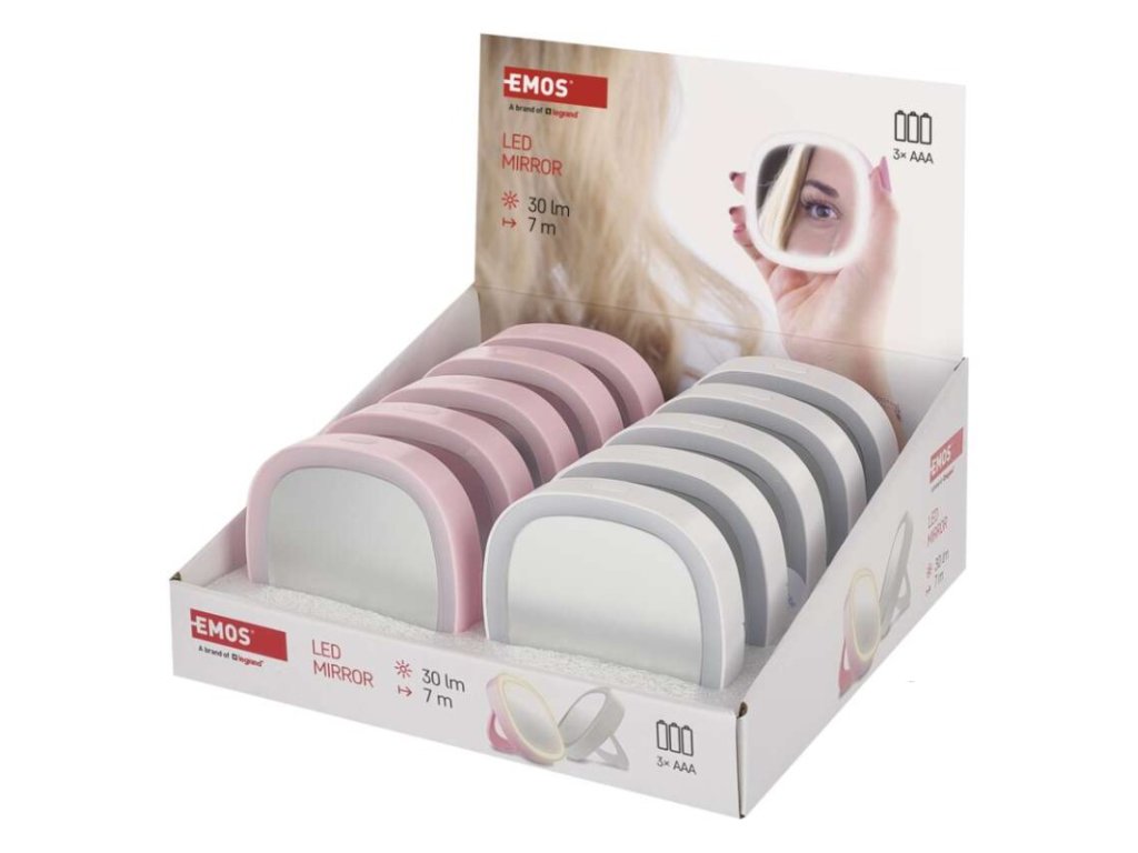 Kapesní kosmetické zrcátko s LED světlem, 10 ks, display box