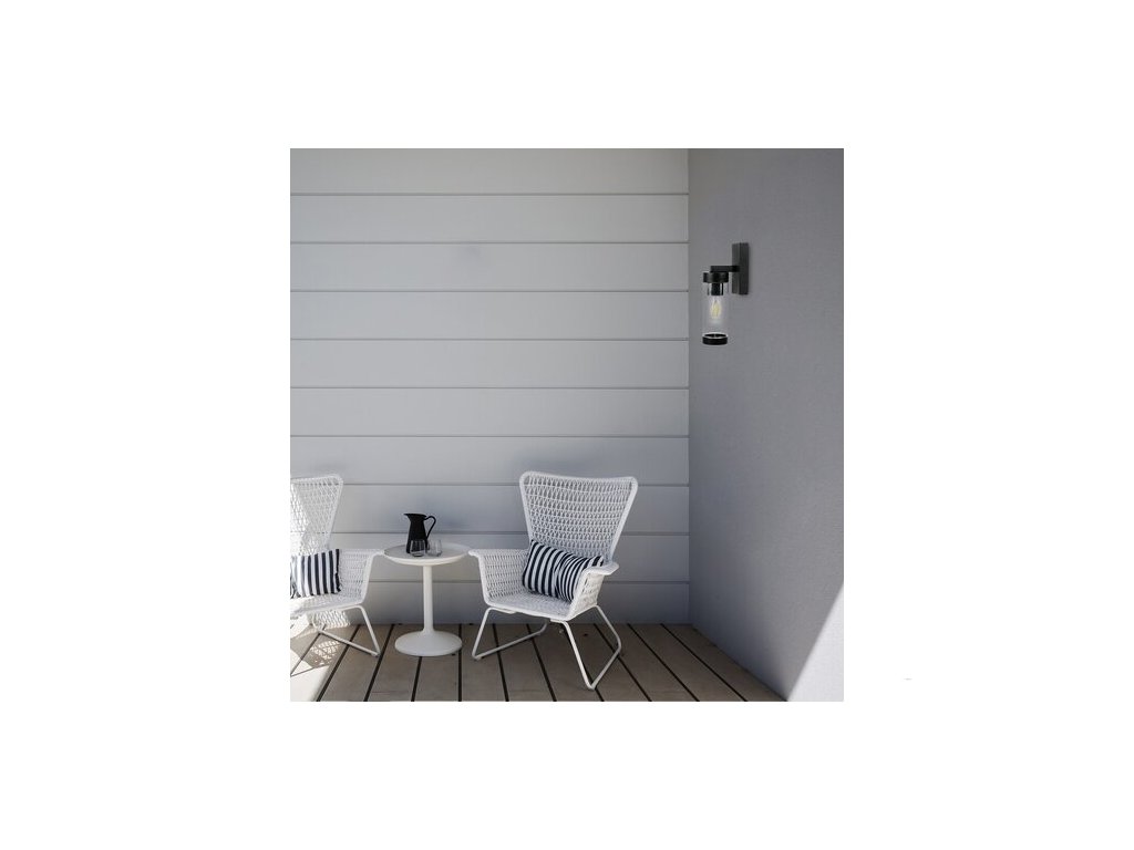 Venkovní nástěnné svítidlo Kolta svítí směrem dolů a může být stylovým doplňkem na terase vašeho moderního domu, ale je také dobrou volbou pro vnější stěnu vašeho domu. Matné černé hliníkové tělo svítidla doplňuje válcové průhledné plastové stínítko a podlouhlý šikmý dekorativní podstavec. Visací hlava lampy je spojena s vodorovným prvkem vyčnívajícím ze základny ozdoby. Kolta může být použita s jedním světelným zdrojem o výkonu do 12 W, typ patice E27. Pokud je lampa umístěna na terase, vyplatí se použít zdroj teplého bílého světla, který pomáhá vytvořit útulnou, domácí atmosféru pro letní večerní rozhovory a večeře. Nástěnné svítidlo Kolta má tyto rozměry: výška 290 mm, průměr 75 mm, vzdálenost od stěny 125 mm. Krytí IP44 zaručuje, že svítidlo je chráněno proti vniknutí předmětů o průměru až 1 mm a proti stříkající vodě z jakéhokoli směru. Venkovní lampa Kolta se dodává bez světelného zdroje.