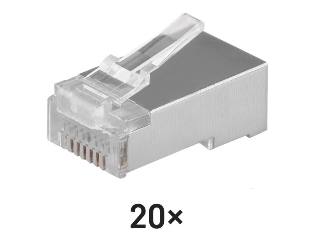 kategorie: CAT5E|materiál konektorů: PE/50 µ zlata - 70 µ nikl|maximální provozní vlhkost: 93 %|min. životnost: 1 000 cyklů zapojení/odpojení|počet konektorů: neuvádí se|použití: pevný drát|prodejní obal: 20 ks, PVC sáček|provozní teplota: -10–60 °C|rozměr: 22 × 12 × 10 mm|skladovací teplota: -40–70 °C|stínění: ano|typ: konektor RJ45 8p8c|určeno pro kabel: FTP, SFTP, F/UTPDoplňkové parametry