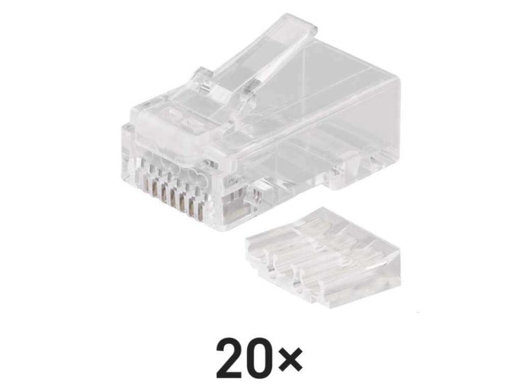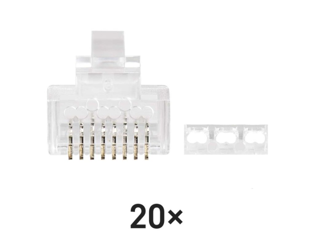 kategorie: CAT6|materiál konektorů: PE/50 µ zlata - 70 µ nikl|maximální provozní vlhkost: 93 %|min. životnost: 1 000 cyklů zapojení/odpojení|počet konektorů: neuvádí se|použití: pevný drát|prodejní obal: 20 ks, PVC sáček|provozní teplota: -10–60 °C|rozměr: 22 × 12 × 10 mm|skladovací teplota: -40–70 °C|stínění: ne|typ: konektor RJ45 8p8c|určeno pro kabel: UTPDoplňkové parametry