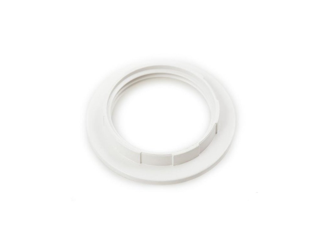 Kroužek značky NEDES, s paticí E27, v bílém barevném provedení, je vyrobený z odolného PC materiálu.