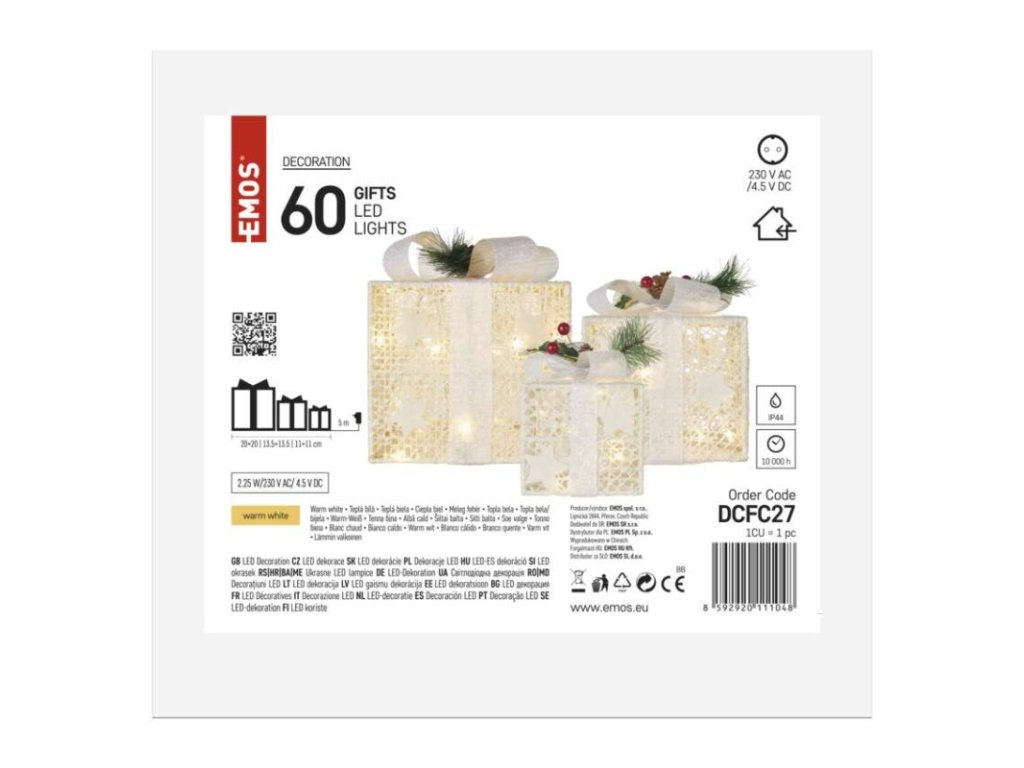 LED dárky s ozdobou, 3 velikosti, vnitřní, teplá bílá