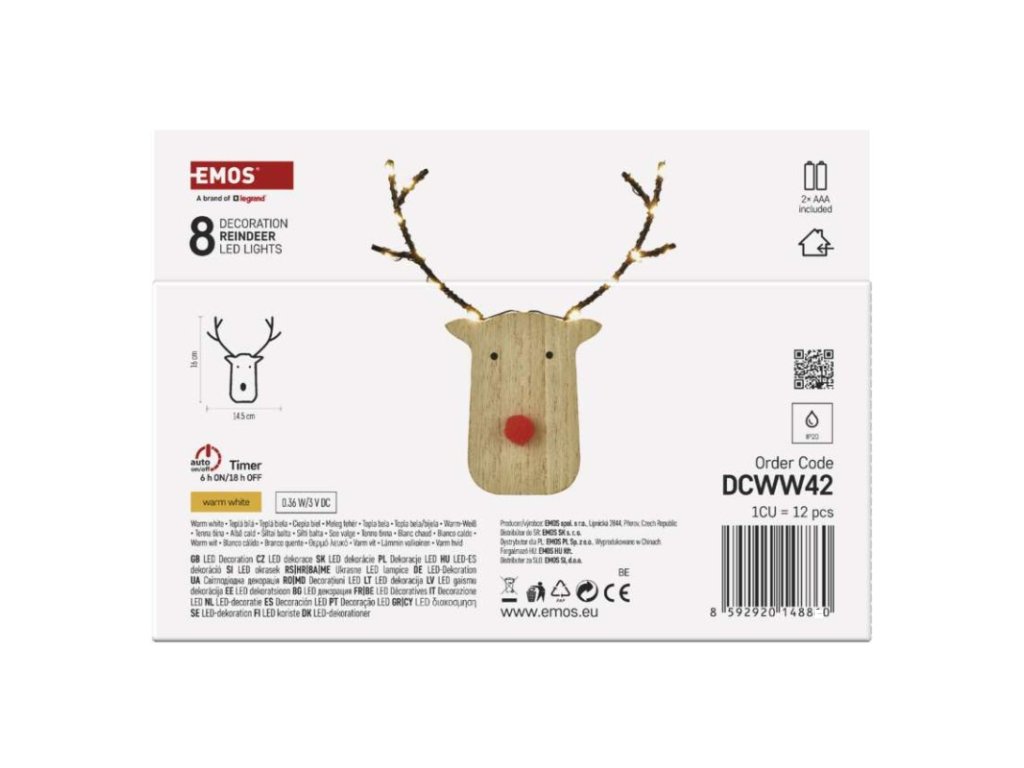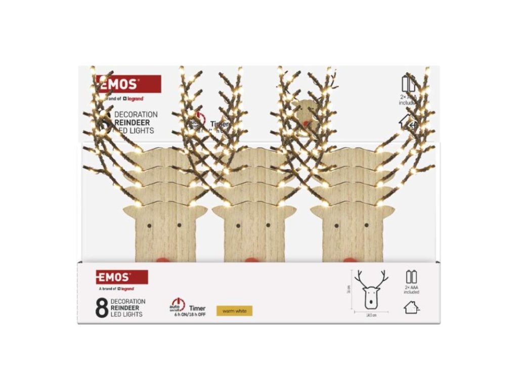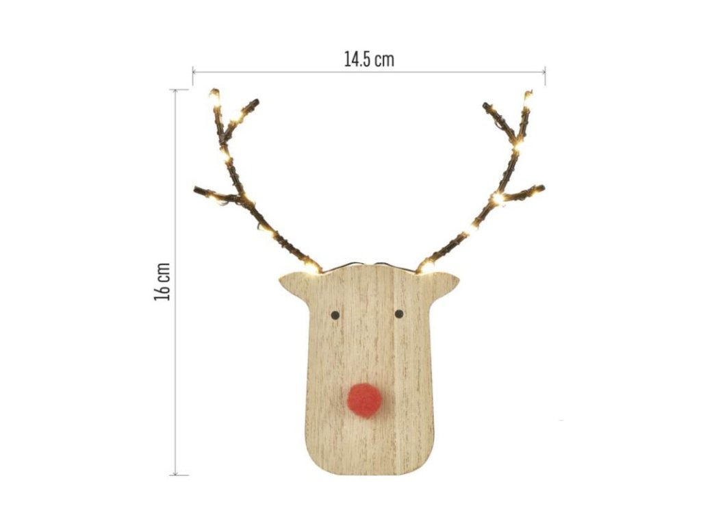 LED dekorace dřevěná – sob, 16 cm, 2x AAA, vnitřní, teplá bílá, časovač,12 ks, display box