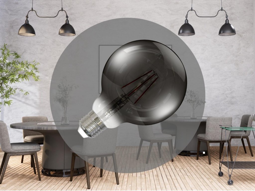 - použité LED jsou žluté filamenty - Filament s jemně černým sklem "SMOKE", což vytváří velmi příjemný vizuální efekt, vhodný pro dotvoření atmosféry v místnosti