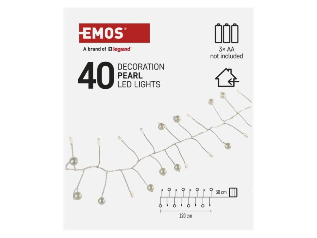 LED girlanda – perly, 1,2 m, 3x AA, vnitřní, teplá bílá, časovač