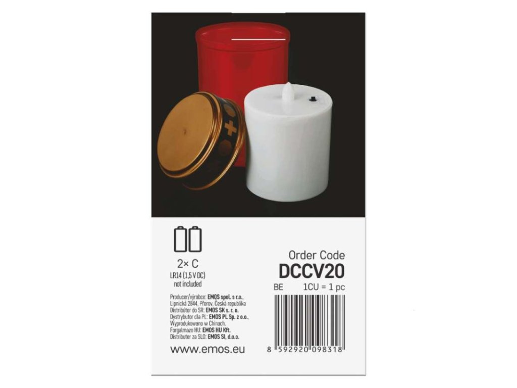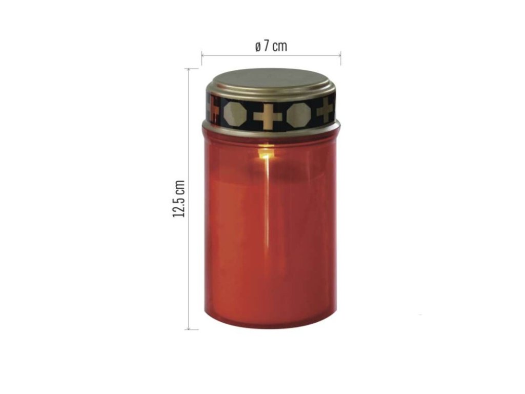 barva drátu: neuvádí se|barva světla: teplá bílá|časovač: senzor|dálkový ovladač: ne|délka přívodu: neuvádí se|krytí: IP44|materiál: plast|počet LED: 1|použití: venkovní i vnitřní|příkon: 0,06 W|prodejní obal: 1 ks, krabice|produkt: hřbitovní svíčka|rozměr: 7 × 12,5 cm|typ napájení: baterie 2× C (není součástí balení)|vstupní napětí: neuvádí se|výstupní napětí: 3 V DC|záruční doba: 2 roky|zdroj svícení: LED|životnost: 10 000 hodinDoplňkové parametry