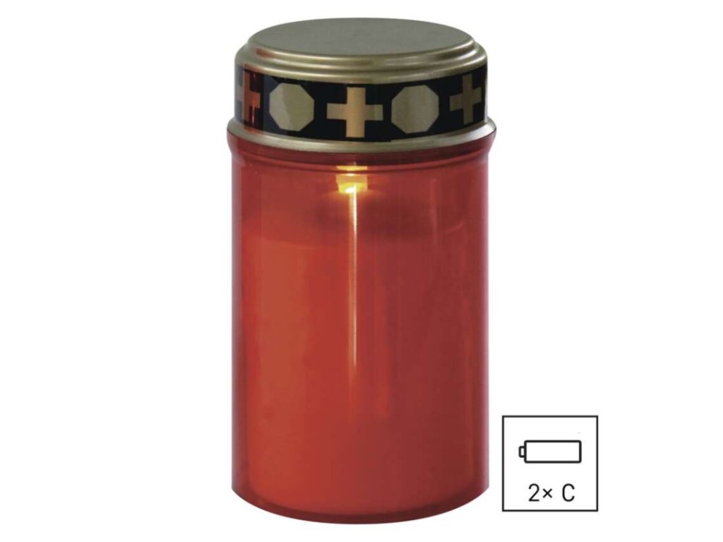 LED hřbitovní svíčka červená, 2x C, venkovní i vnitřní, teplá bílá, senzor