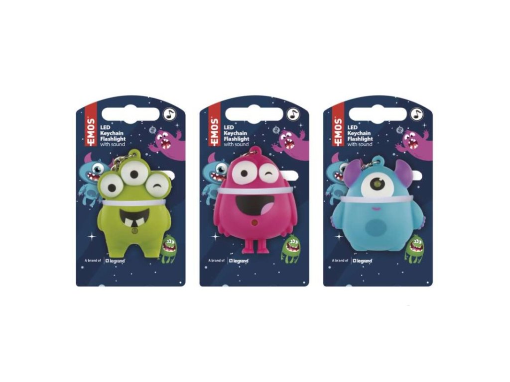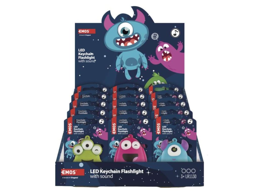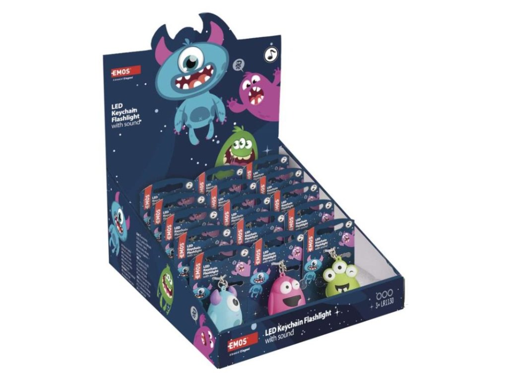 LED klíčenka - příšerky se zvukem, 18 ks, display box