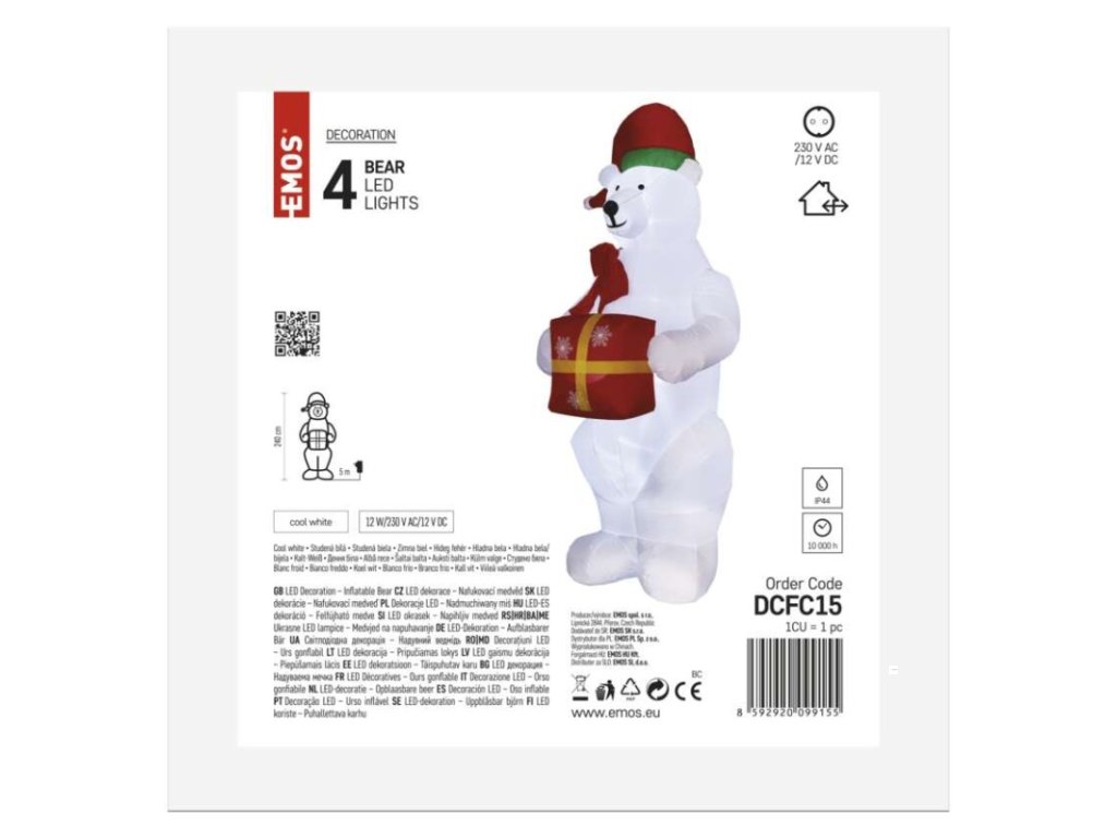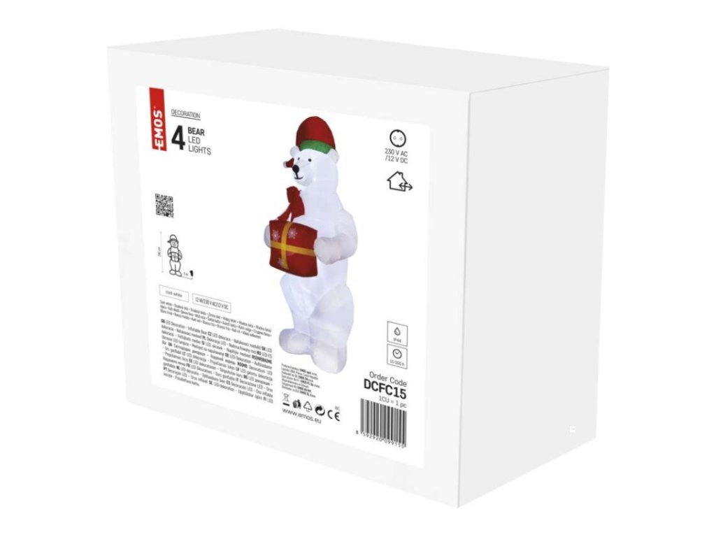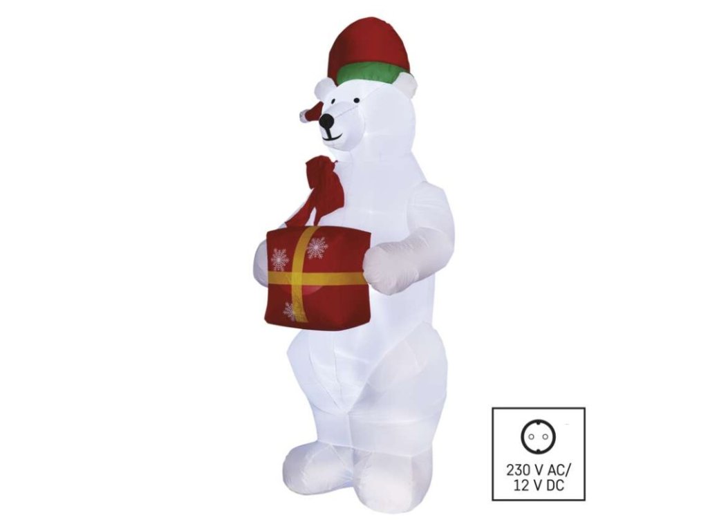 LED lední medvěd s vánočním dárkem, nafukovací, 240 cm, venkovní i vnitřní, studená bílá