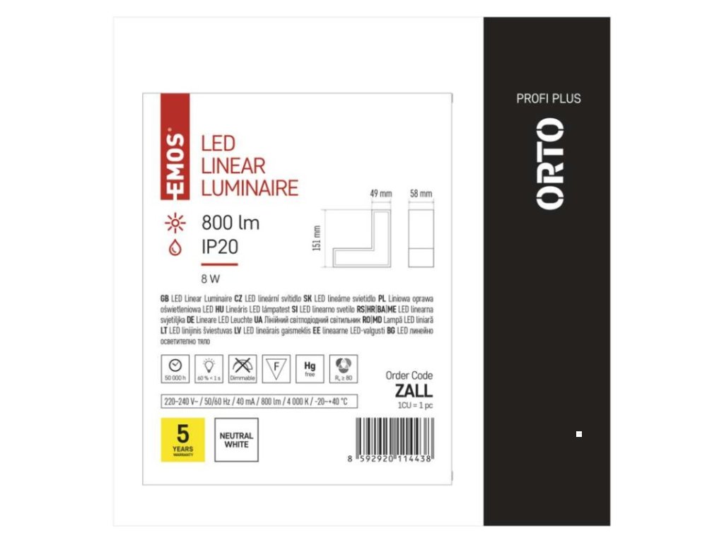 barva světla: neutrální bílá|barva těla: bílá|dálkový ovladač: ne|do chodby a na schodiště: neuvádí se|do dílny a garáže: neuvádí se|do kanceláře: neuvádí se|do koupelny: neuvádí se|do kuchyně: neuvádí se|do obýváku, ložnice a dětského pokoje: neuvádí se|dosah senzoru: nemá senzor|flicker-free: ano|frekvence: 50/60 Hz|index podání barev (CRI): Ra > 80|kategorie: PROFI PLUS|krytí: IP20|materiál difuzoru: plast (PS)|materiál LGP: neuvádí se|materiál těla: hliník|montážní otvor: neuvádí se|možnost stmívání: ne|náhrada za žárovku: neuvádí se|napětí: 220–240 V|na zahradu a balkon: neuvádí se|pohybový senzor: ne|příkon: 8 W|prodejní obal: 1 ks, krabice|proud: 40 mA|řada: ORTO|rozměr: 151 × 151 × 58 mm|světelná účinnost: 100 lm/W|světelný tok: 800 lm|teplota chromatičnosti: 4 000 K|tvar: neuvádí se|typ difuzoru: mléčný|typ svítidla: lineární svítidlo|účiník: > 0,9|UGR<: 22|úhel vyzařování: 110°|umístění: neuvádí se|výstupní proud ze zdroje: neuvádí se|záruční doba: 5 let|zdroj světla: LED|životnost: 50 000 hodin|způsob montáže: přisazené/vestavnéDoplňkové parametry