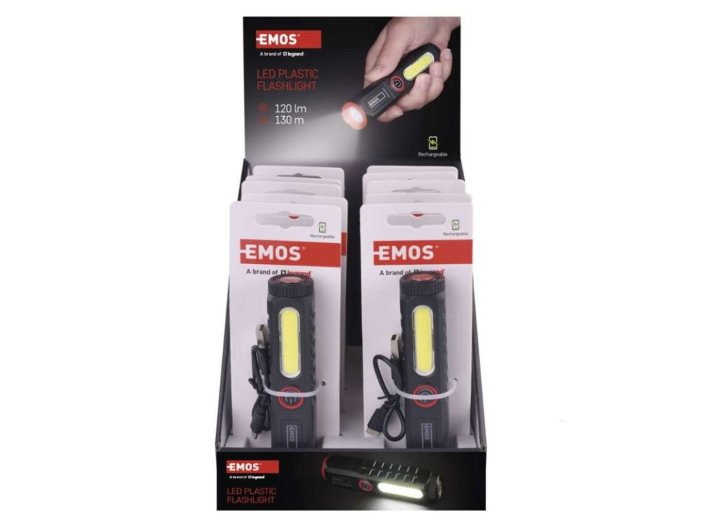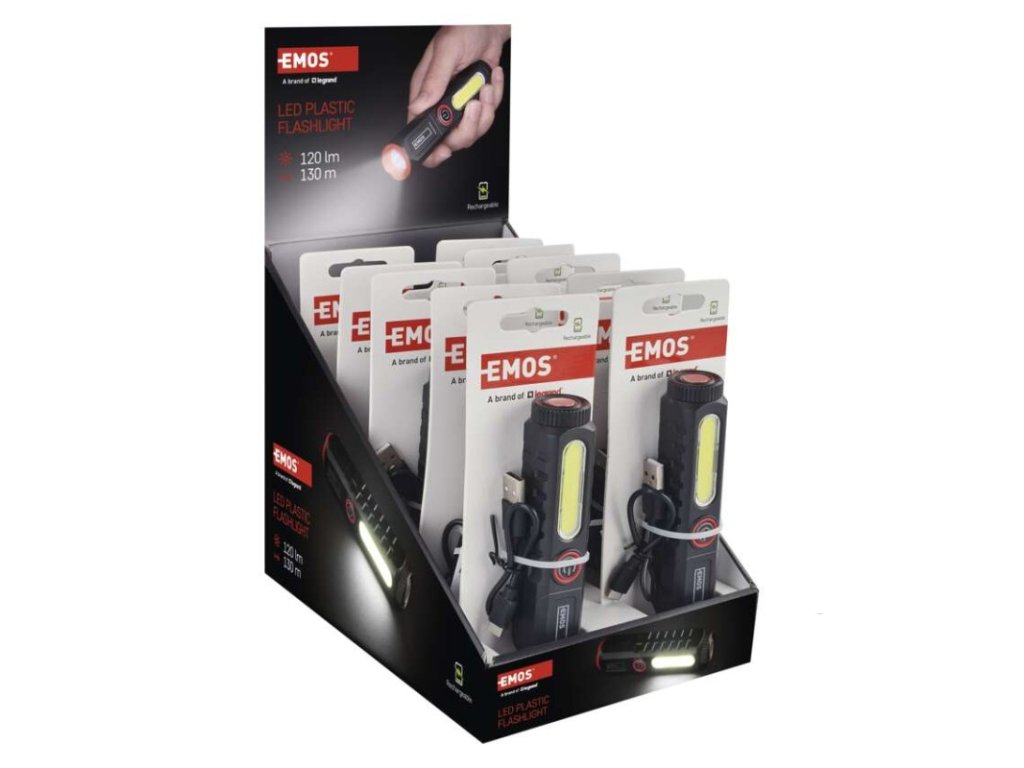 LED nabíjecí plastová svítilna P4720, 120 lm, 10 ks, display box