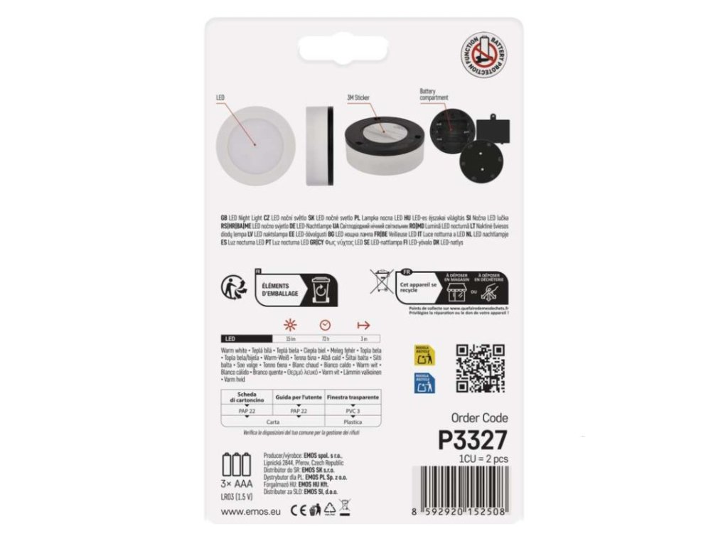 LED noční světlo P3327 na 3× AAA, 2 ks