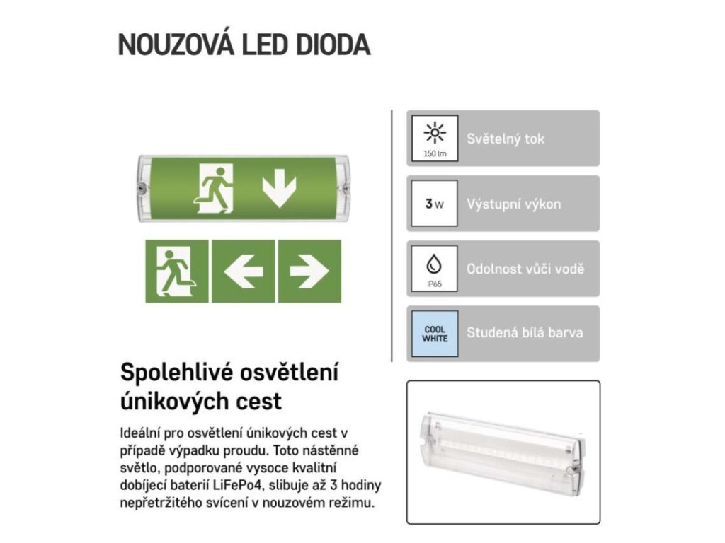 | výstupní výkon v nouzovém stavu: | 3 W |
