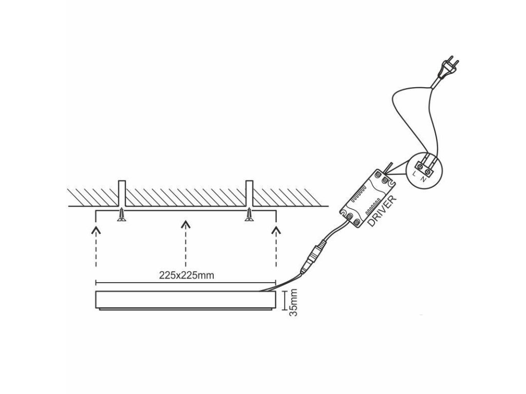Panel je přizpůsoben pro montáž přímo na zeď nebo strop.