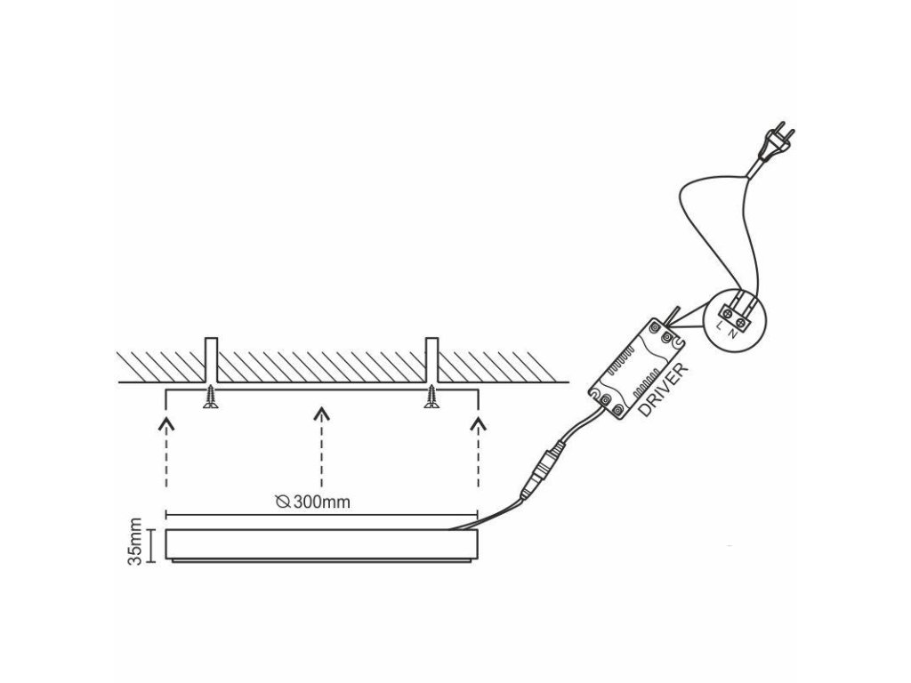 Panel je přizpůsoben pro montáž přímo na zeď nebo strop.