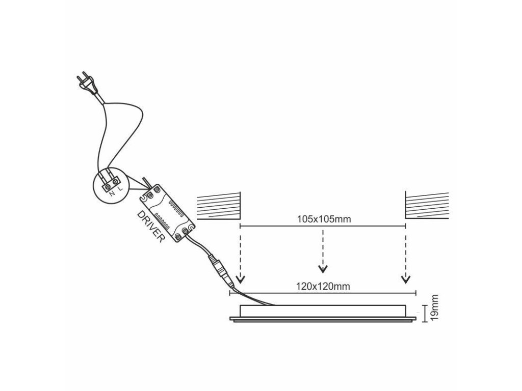 Panel je bezúdržbový a dodáván s pružinkami, které slouží k upevnění panelu například do sádrokartonových stropů. Je nutné udělat montážní otvor 105x105 mm.