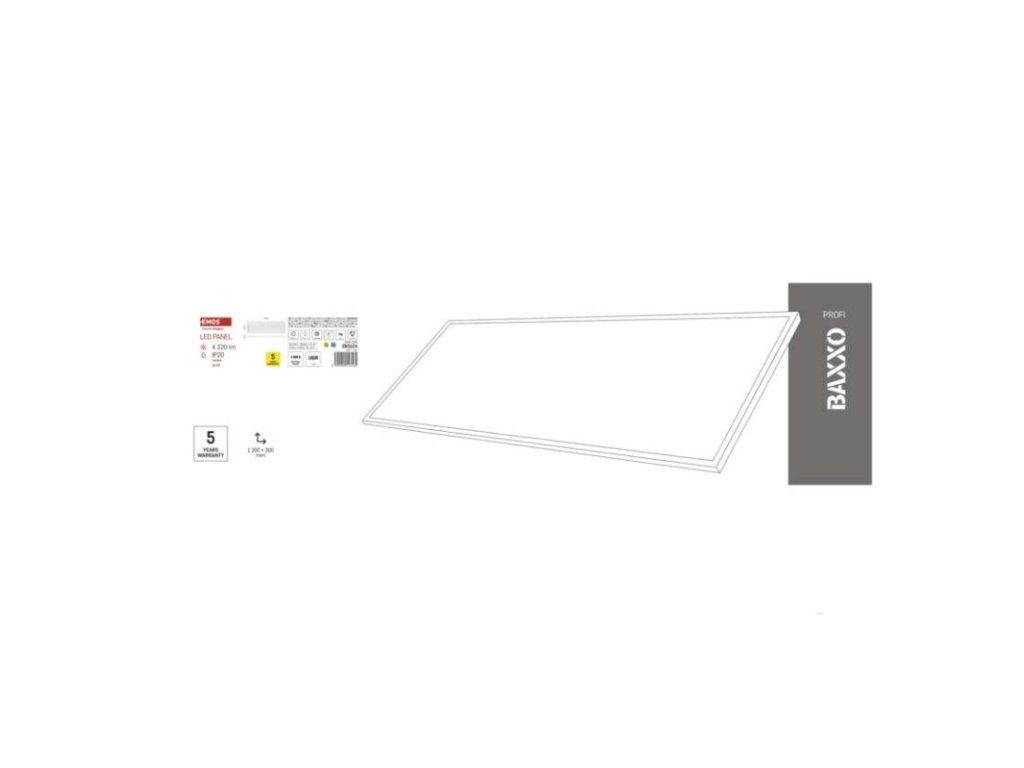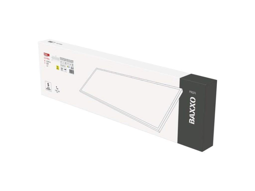 barva světla: neutrální bílá|barva těla: bílá|dálkový ovladač: ne|další funkce: –|do chodby a na schodiště: ano|do dílny a garáže: ne|do kanceláře: ano|do koupelny: ne|do kuchyně: ano|do obýváku, ložnice a dětského pokoje: ano|dosah senzoru: nemá senzor|flicker-free: ano|frekvence: 50/60 Hz|index podání barev (CRI): Ra > 80|jazyky aplikace: –|kategorie: PROFI|kompatibilita: –|krytí: IP20|materiál difuzoru: plast (PS)|materiál LGP: –|materiál těla: ocelový plech|montážní otvor: –|možnost stmívání: ne|náhrada za žárovku: 4× 18 W CFL|napětí: 220–240 V~|na zahradu a balkon: ne|notifikace do mobilní aplikace: ne|obsah balení: –|ovládání hlasovými asistenty: ne|podporované OS: –|pohybový senzor: ne|přenosová frekvence: –|příkon: 36 W|prodejní obal: 1 ks, krabice|protokol: –|proud: 170 mA|řada: BAXXO|rozměr: 1 200 × 300 × 50 mm|světelná účinnost: 120 lm/W|světelný tok: 4 320 lm|teplota chromatičnosti: 4 000 K|tvar: obdelník|typ difuzoru: mikroprizmatický|typ svítidla: panel|účiník: > 0,9|UGR<: 19|úhel vyzařování: 90°|umístění: stropní/nástěnné|výstupní proud ze zdroje: 950 mA|záruční doba: 5 let|zdroj světla: LED|životnost: 50 000 hodin|způsob montáže: přisazenéDoplňkové parametry