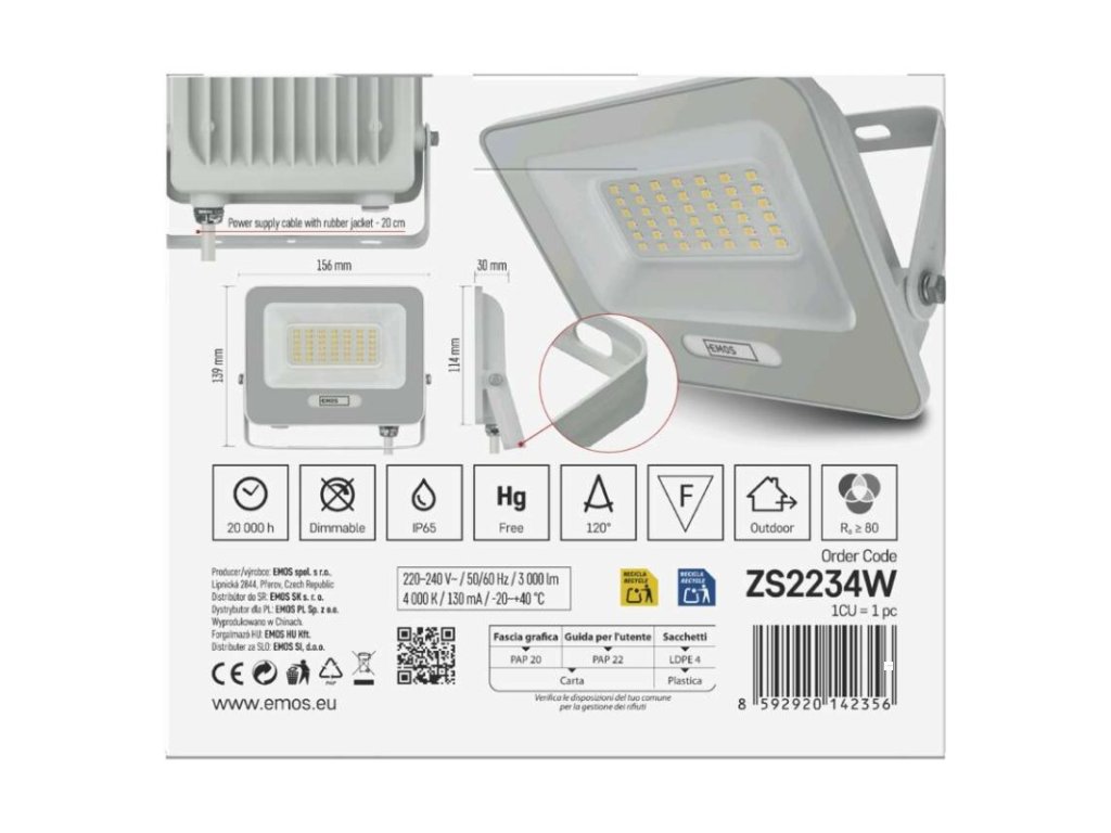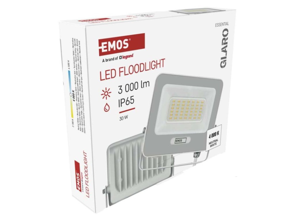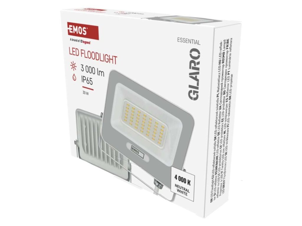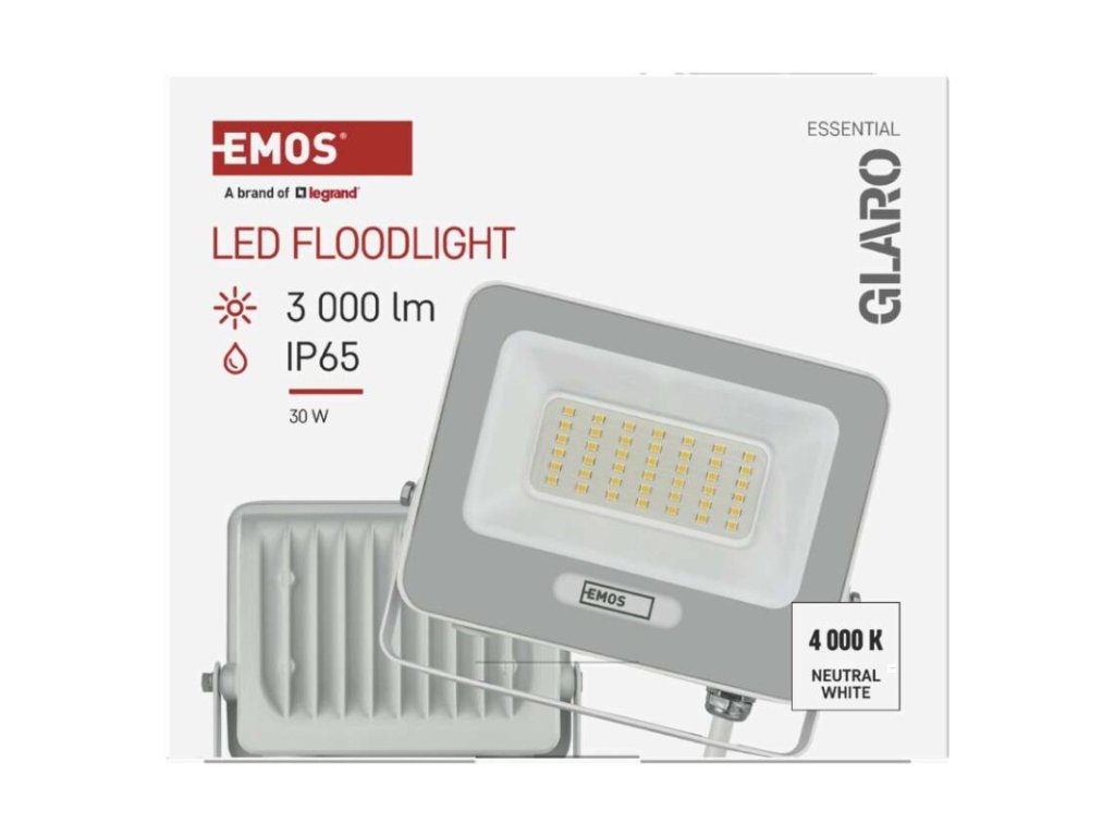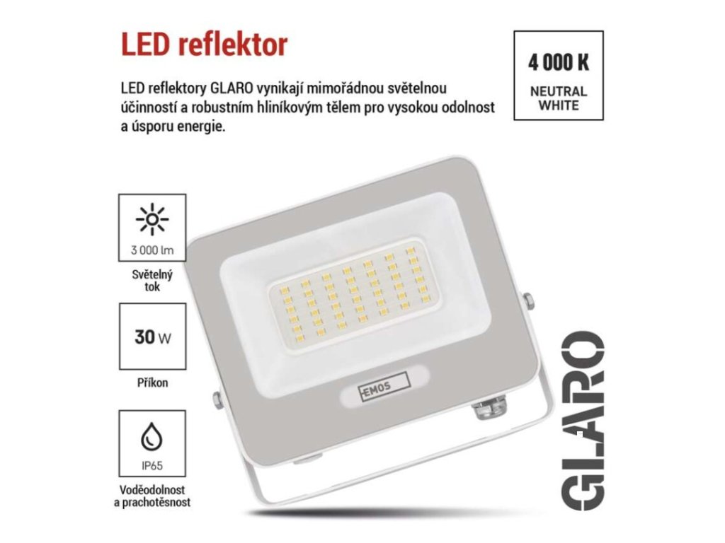 LED reflektor GLARO 30W, bílý, IP65, 3000 lm, neutrální bílá