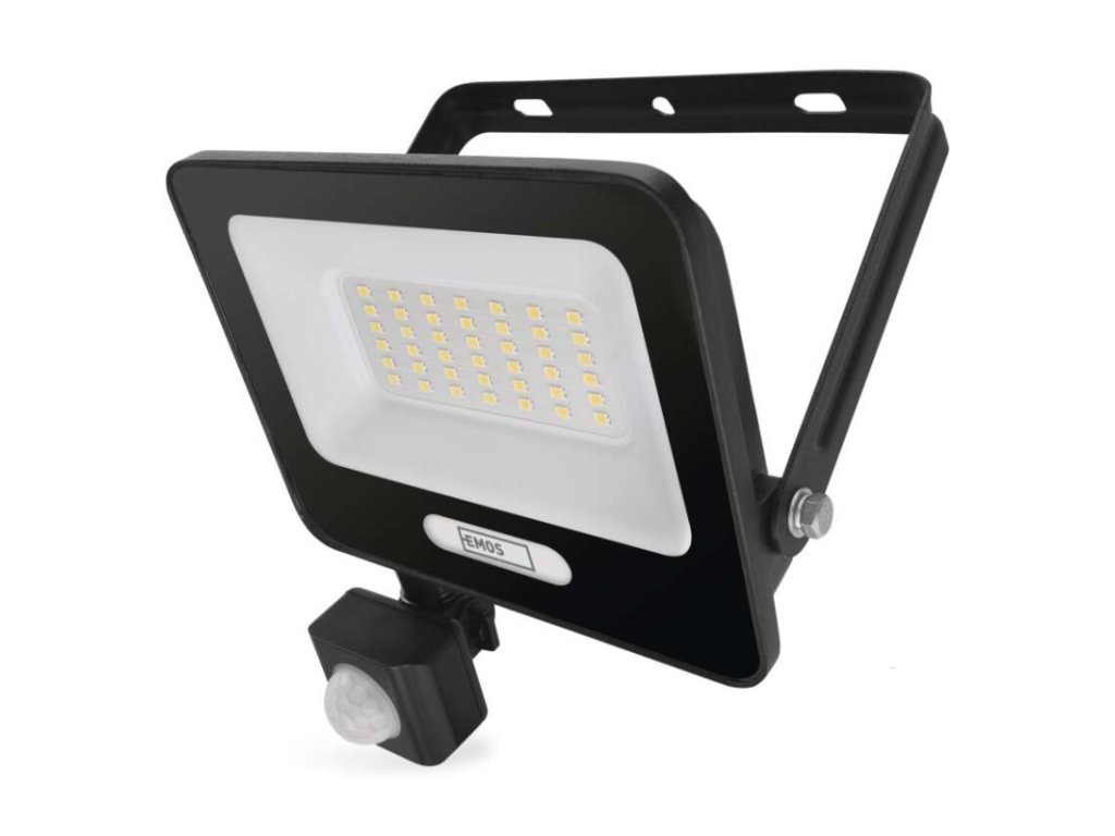 LED reflektor GLARO s pohybovým čidlem, 30 W, černý, IP54, 3000 lm, neutrální bílá