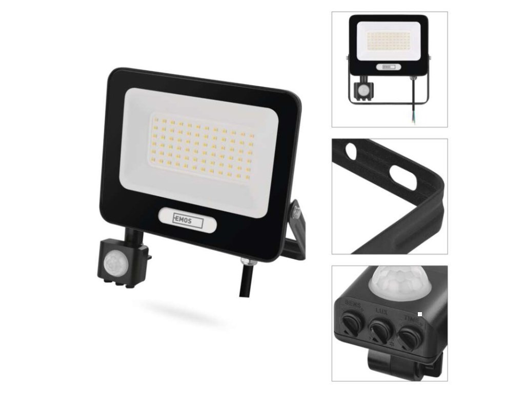 LED reflektor GLARO s pohybovým čidlem, 50 W, černý, IP54, 5000 lm, neutrální bílá