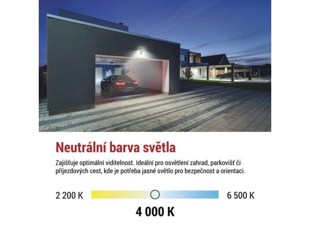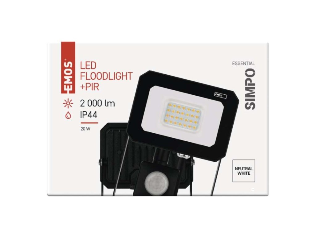akumulátor: ne|barva: černá|barva světla: neutrální bílá|délka přívodního kabelu: 20 cm|doba svícení na AKU: neuvádí se|dosah PIR senzoru: 8 m|energetická třída použitého světelného zdroje: –|flicker-free: ano|frekvence: 50/60 Hz|index podání barev (CRI): Ra > 80|kategorie: ESSENTIAL|krytí: IP44|materiál difuzoru: sklo|materiál přívodního kabelu: guma|materiál těla: hliník|napájení: ze sítě|napětí: 220–240 V~|PIR senzor: ano|počet průchozích zásuvek: neuvádí se|použití: závěsná montáž|příkon: 20 W|prodejní obal: 1 ks, krabice|proud: 90 mA|řada: SIMPO|rozměr: 114 × 156 × 52 mm|rozsah pracovní teploty: -20 °C až +40 °C|stmívání: ne|stupeň ochrany proti mechanickým nárazům: neuvádí se|světelná účinnost: 100 lm/W|světelný tok: 2 000 lm|teplota chromatičnosti: 4 000 K|typ přívodního kabelu: H05RN-F|typ průchozích zásuvek: neuvádí se|účiník: > 0,7|úhel vyzařování: 120°|záruční doba: 2 roky|zdroj světla: LED|životnost: 25 000 hodin|zkušební žárovka součástí balení: neDoplňkové parametry
