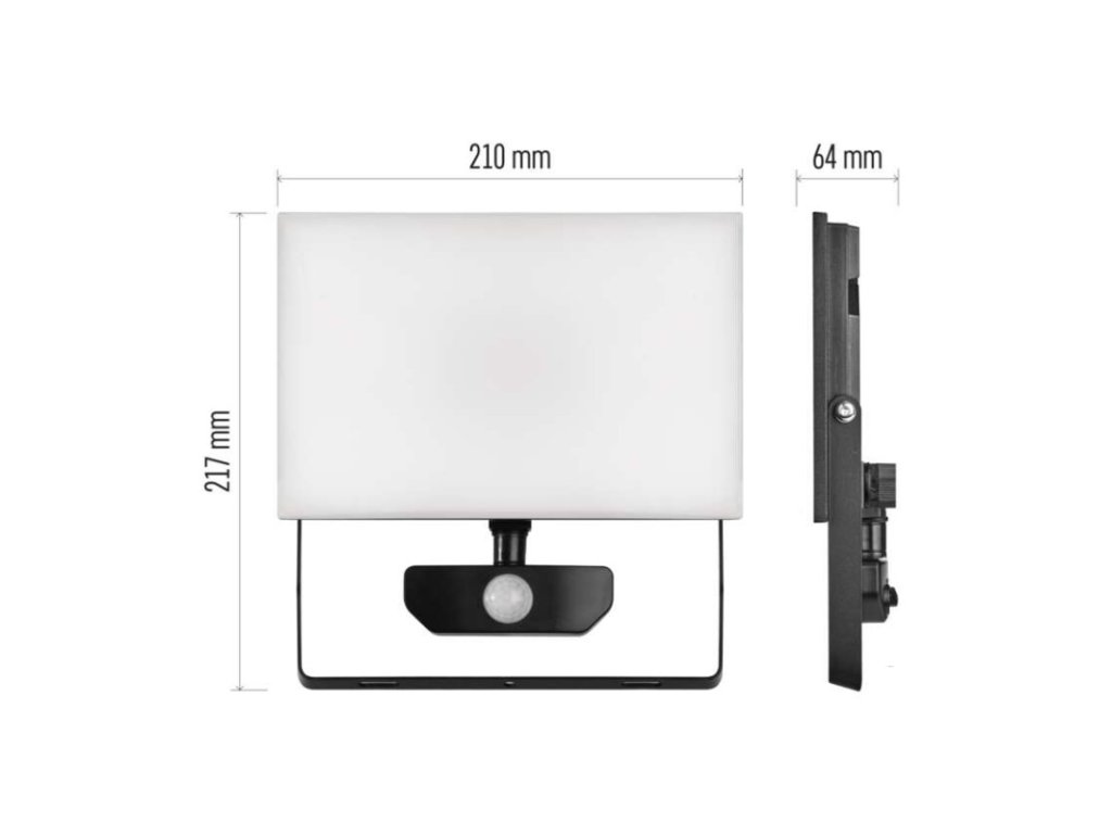 akumulátor: neuvádí se|barva: černá|barva světla: neutrální bílá|délka přívodního kabelu: 30 cm|doba svícení na AKU: neuvádí se|dosah PIR senzoru: 10 m|energetická třída použitého světelného zdroje: neuvádí se|flicker-free: ano|frekvence: 50/60 Hz|index podání barev (CRI): Ra > 80|kategorie: CLASSIC|krytí: IP54|materiál difuzoru: plast (PC)|materiál přívodního kabelu: guma|materiál těla: hliník|napájení: ze sítě|napětí: 220–240 V~|PIR senzor: ano|počet průchozích zásuvek: 0|použití: povrchová montáž|příkon: 50 W|prodejní obal: 1 ks, krabice|proud: 220 mA|řada: TAMBO|rozměr: 210 × 217 × 64 mm|rozsah pracovní teploty: -20 °C až +40 °C|stmívání: ne|stupeň ochrany proti mechanickým nárazům: IK06|světelná účinnost: 100 lm/W|světelný tok: 5 000 lm|teplota chromatičnosti: 4 000 K|typ přívodního kabelu: neuvádí se|typ průchozích zásuvek: neuvádí se|typ stmívání: –|účiník: > 0,9|úhel vyzařování: 120°|záruční doba: 3 roky|zdroj světla: LED|životnost: 25 000 hodin|zkušební žárovka součástí balení: neDoplňkové parametry