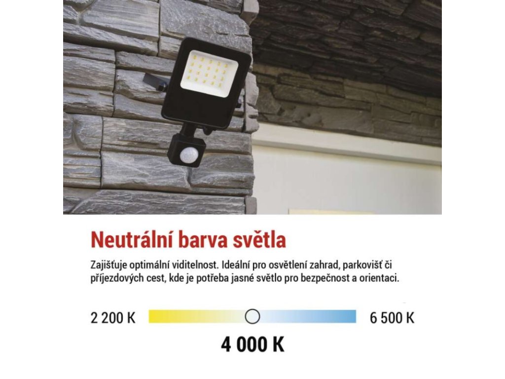 LED reflektor VISIO s pohybovým čidlem, 30 W, černý, neutrální bílá