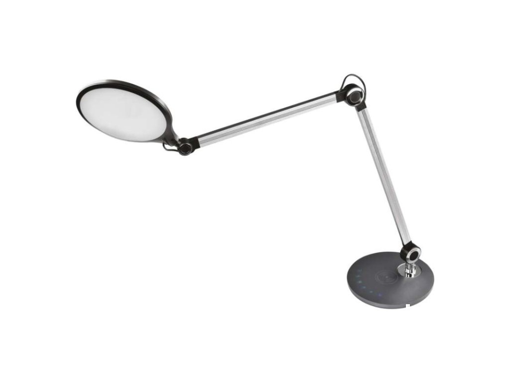 barva: tmavě šedá|barva světla: teplá/neutrální/studená bílá|činitel stárnutí: neuvádí se|čip LED: neuvádí se|délka přívodního kabelu: 1,3 m|energetická třída: E|energetická třída (od 1.9.2021): neuvádí se|index podání barev (CRI): Ra >80|integrovaná nabíjecí baterie: ne|krytí: IP20|materiál: hliník/plast|max. výkon: neuvádí se|napájecí zdroj: 13,5 V/1 500 mA|napájecí zdroj součástí balení: ano|napětí: 220–240 V|obsah rtuti: neuvádí se|patice (uchycení žárovky): neuvádí se|počet LED: neuvádí se|počet spínacích cyklů: neuvádí se|příkon: 9,2 W|prodejní obal: 1 ks, krabice|rozměr: 200 × 550 × 700 mm|rychlost náběhu na 100 %: neuvádí se|stmívání: ano|světelný tok: 640 lm|teplota chromatičnosti: 3 000/4 000/6 500 K|typ napájení: síť|účiník: neuvádí se|USB port: ne + bezdrátové nabíjení|životnost: neuvádí seDoplňkové parametry