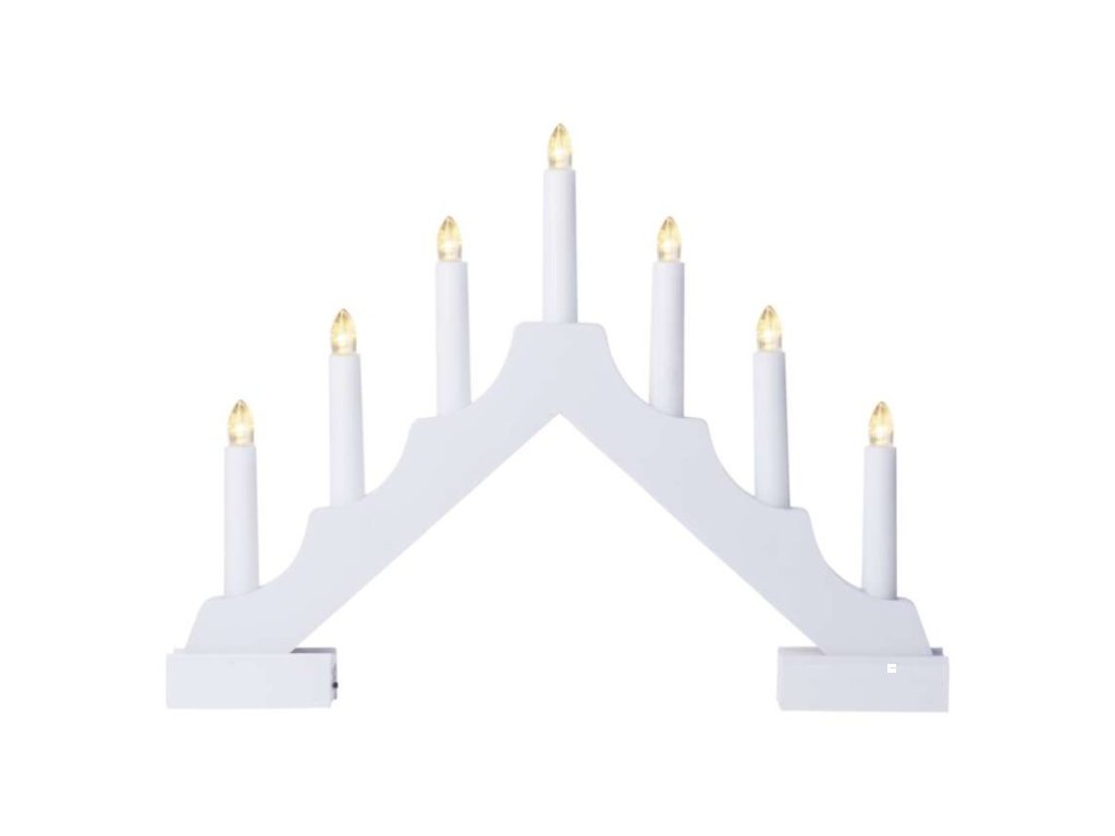 LED svícen dřevěný bílý, 29 cm, 2x AA, vnitřní, teplá bílá, časovač