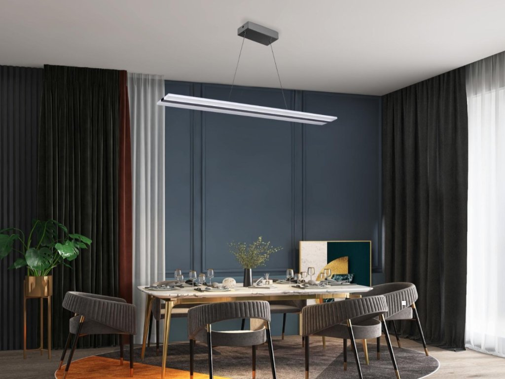 LED designové závěsné svítidlo s dálkovým ovladačem RF 2,4GHz značky NEDES, je lampa vhodná do kuchyně, jídelny, ložnice, chodby nebo obývacího pokoje. Tato svítidla skvěle kombinují moderní styl s nejvyšší kvalitou. Světla jsou ovládána SMART technologii pomocí aplikace NEDES Smart.
