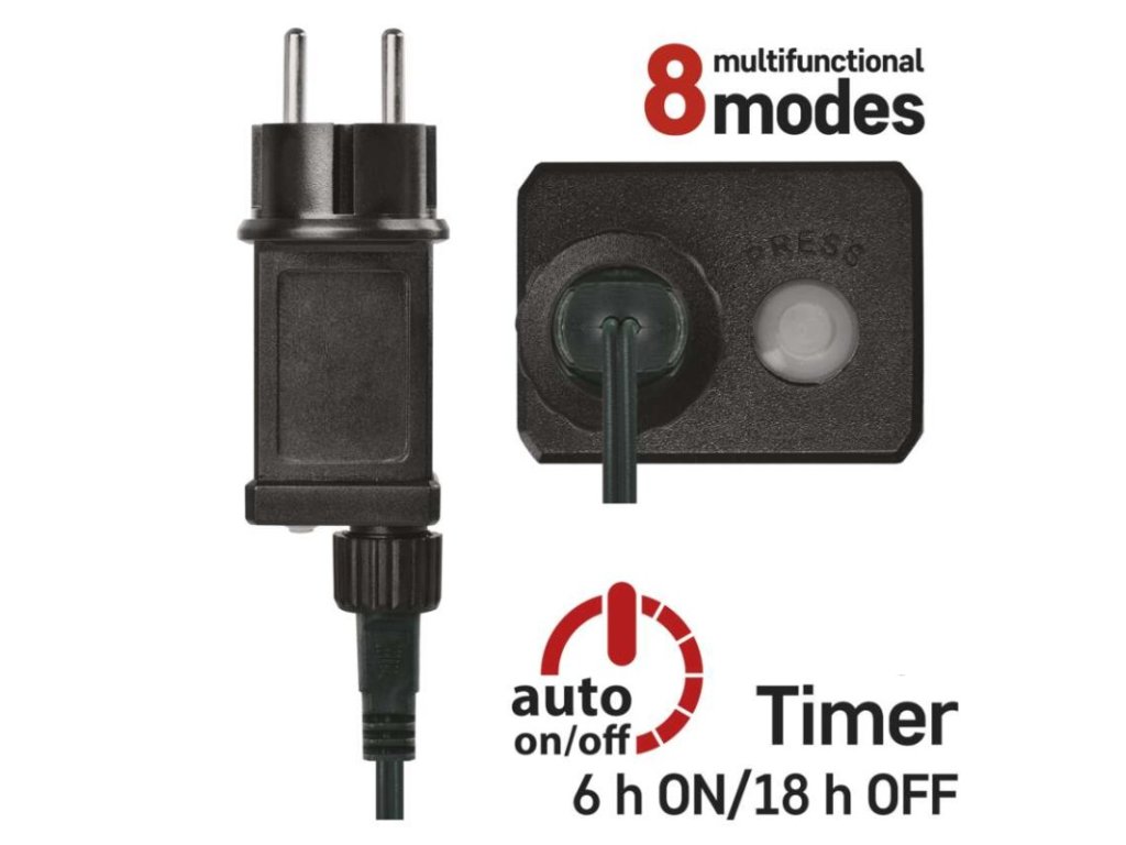 barva drátu: zelená|barva světla: multicolor|časovač: ano|dálkový ovladač: ne|další funkce: –|délka přívodu: 5 m|funkce: 8 módů (multifunkce)|jazyky aplikace: –|kompatibilita: –|krytí: IP44|LED mezera: 10 cm|materiál: PVC|možnost propojení: ne|notifikace do mobilní aplikace: ne|ovládání hlasovými asistenty: ne|počet LED: 200|podporované OS: –|použití: venkovní i vnitřní|přenosová frekvence: –|příkon: 3,6 W|prodejní obal: 1 ks, krabice|produkt: řetěz|protokol: –|pro výšku stromu: 210 cm|rozměr: 20 m|tvar: kulička|typ napájení: síťový adaptér|velikost LED: 10 mm|vstupní napětí: 230 V AC|výstupní napětí: 31 V DC|záruční doba: 2 roky|životnost: 10 000 hodinDoplňkové parametry
