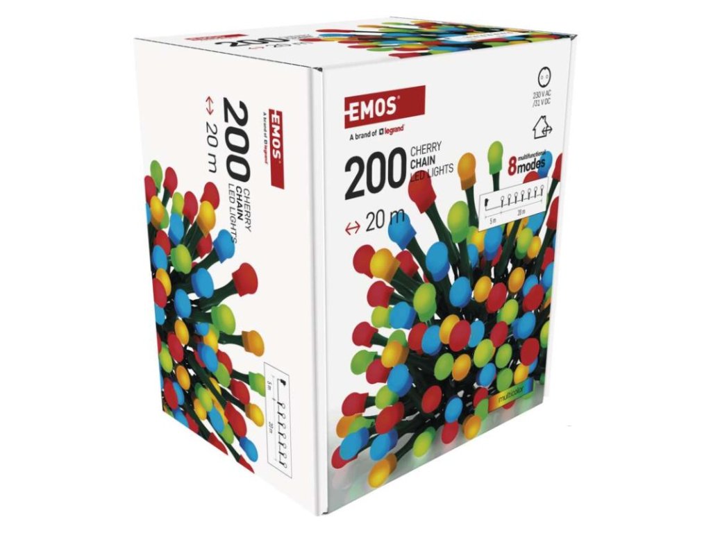 LED vánoční cherry řetěz – kuličky, 20 m, venkovní i vnitřní, multicolor, programy,časovač